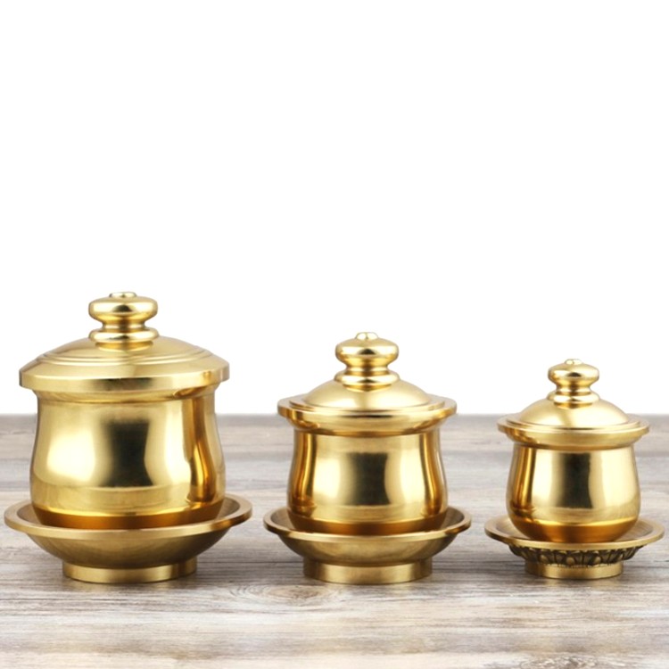 速发佛具大悲贡杯净水杯家用装内胆佛前供养供水杯光身纯铜圣水杯