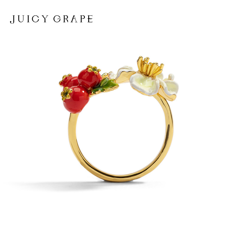 JuicyGrape山楂花朵戒指女小众设计时尚个性戒指闺蜜女友礼物