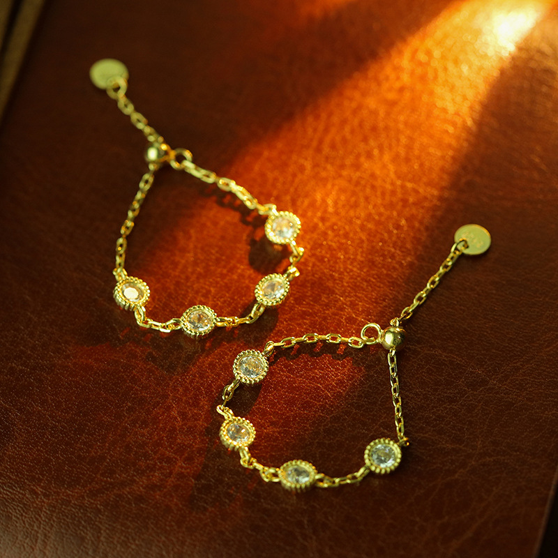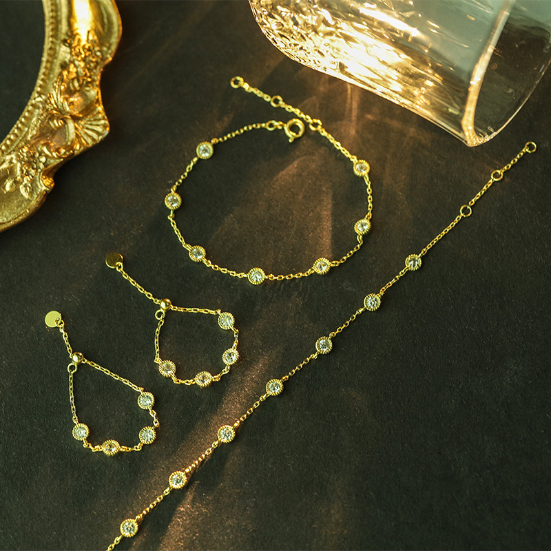 设计师款银河倾泻镶钻圆钻手链梦想成真双面银镀14k黄金手链
