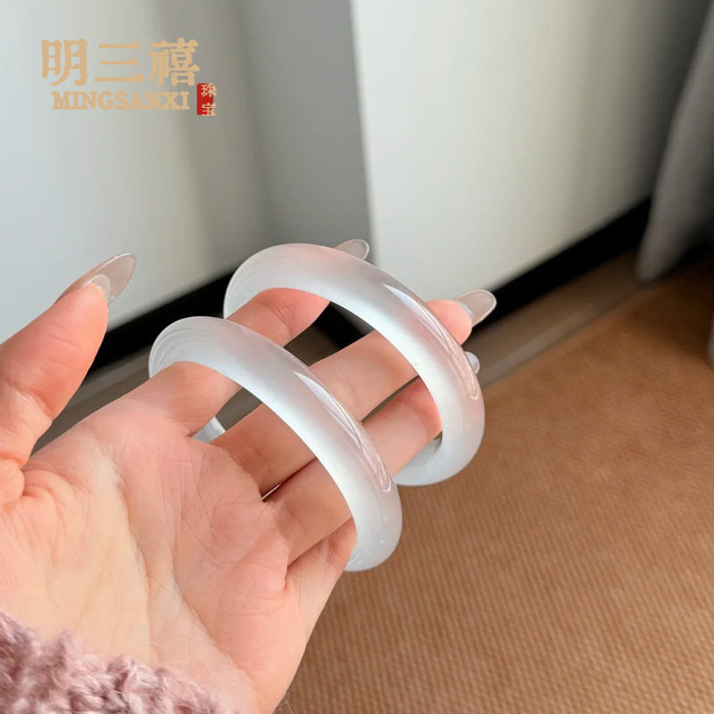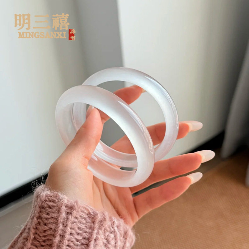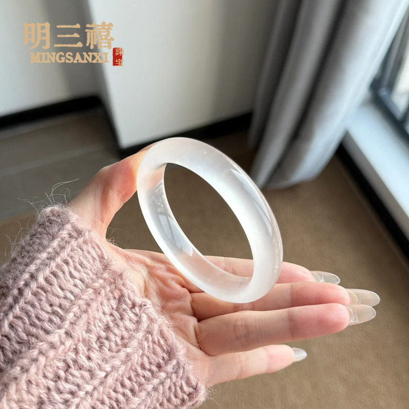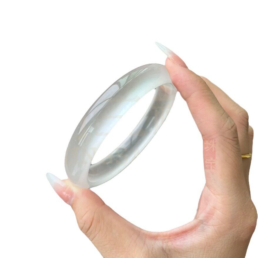 缅甸天然高冰种石英岩手镯白月光独龙玉白色水沫玉荔枝冻玉石手镯