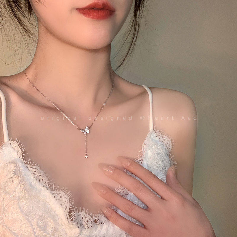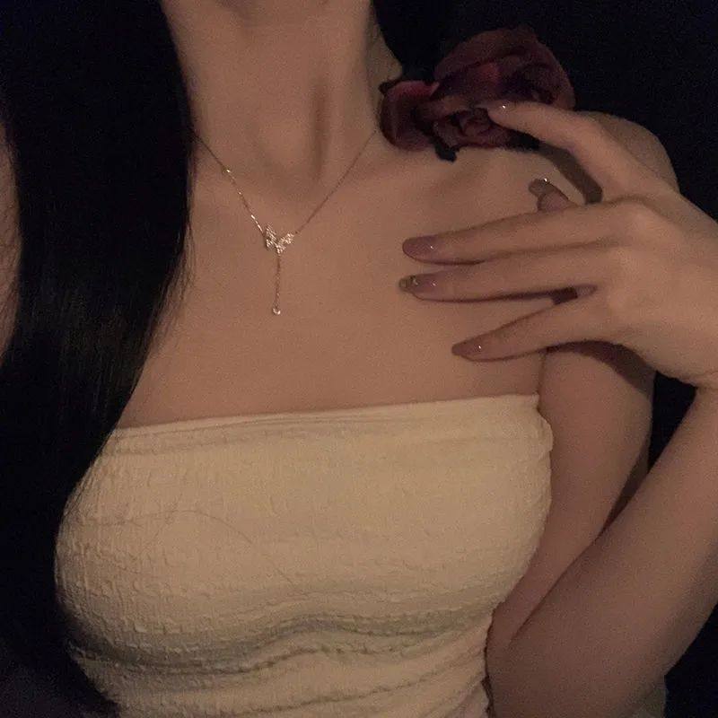 山茶花满钻蝴蝶珍珠项链女高级感轻奢小众流苏锁骨链2023年新款潮