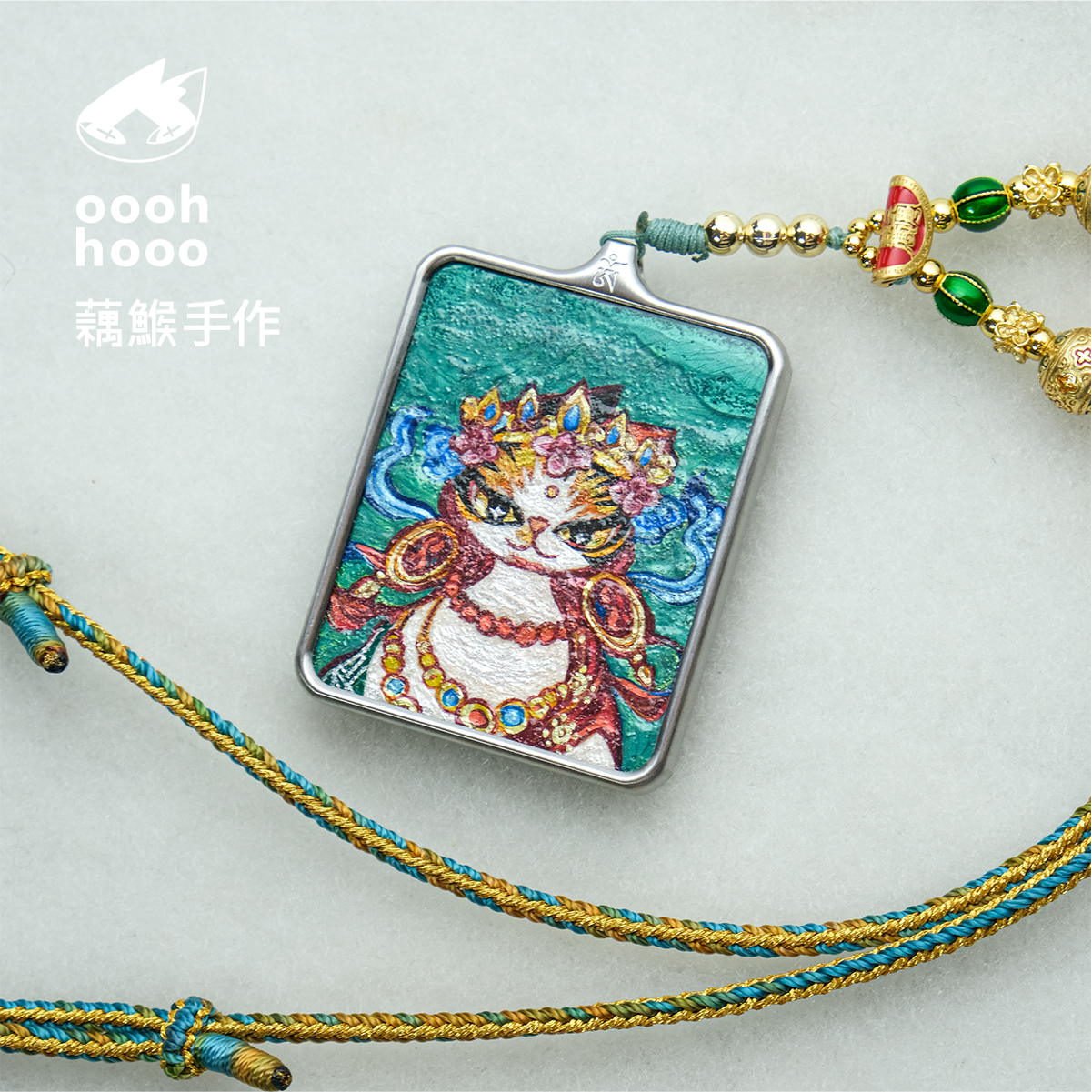 ooohhooo手作唐卡风格手绘项坠编织项链敦煌插画猫咪气质国潮