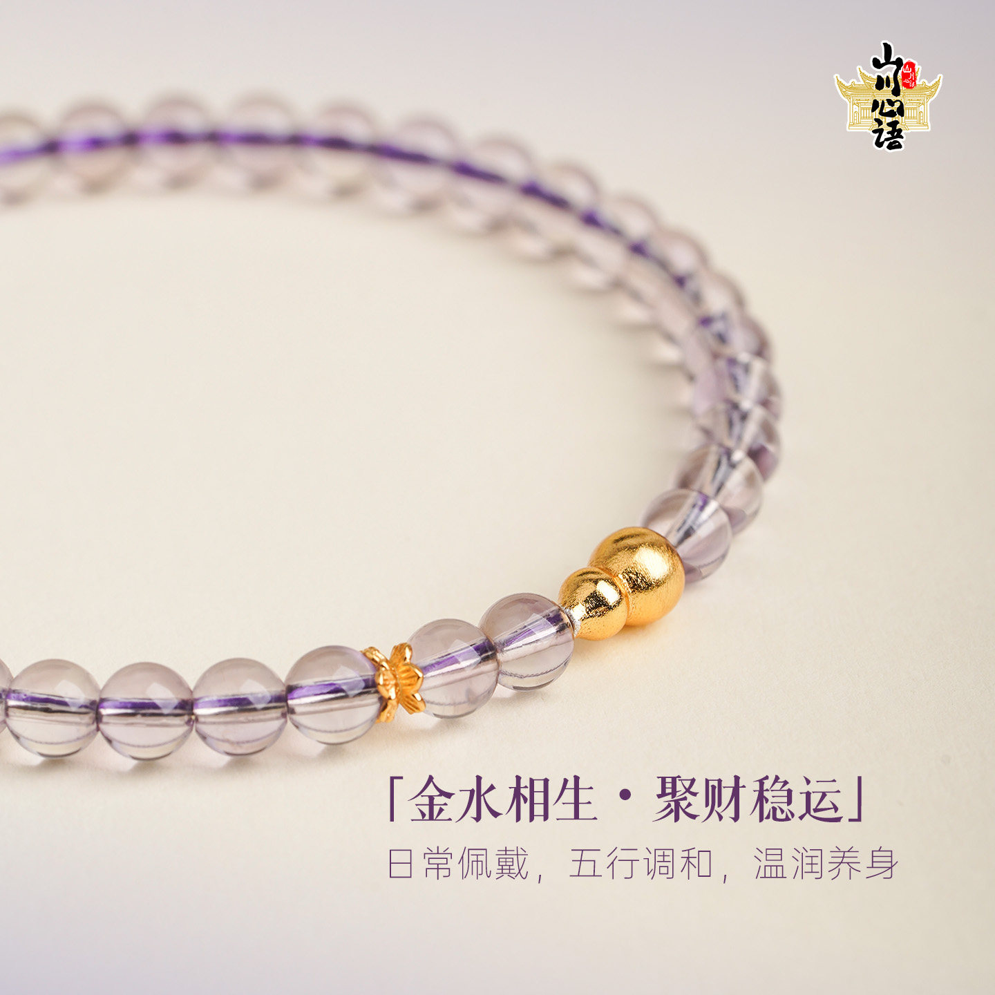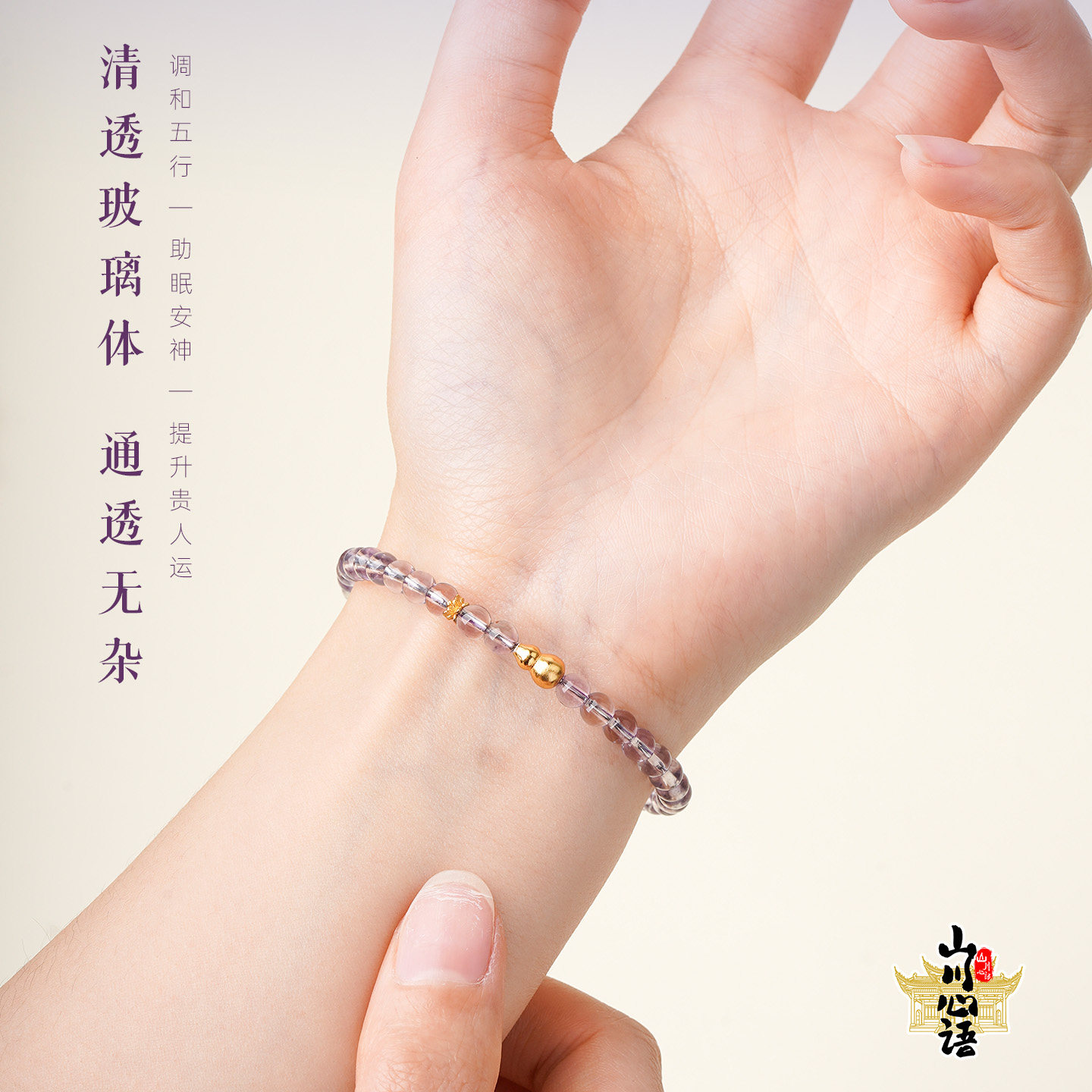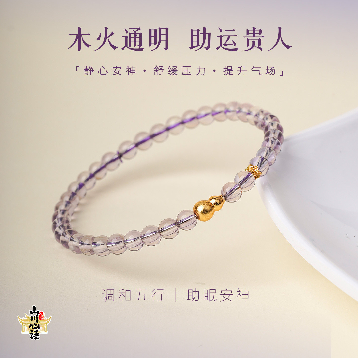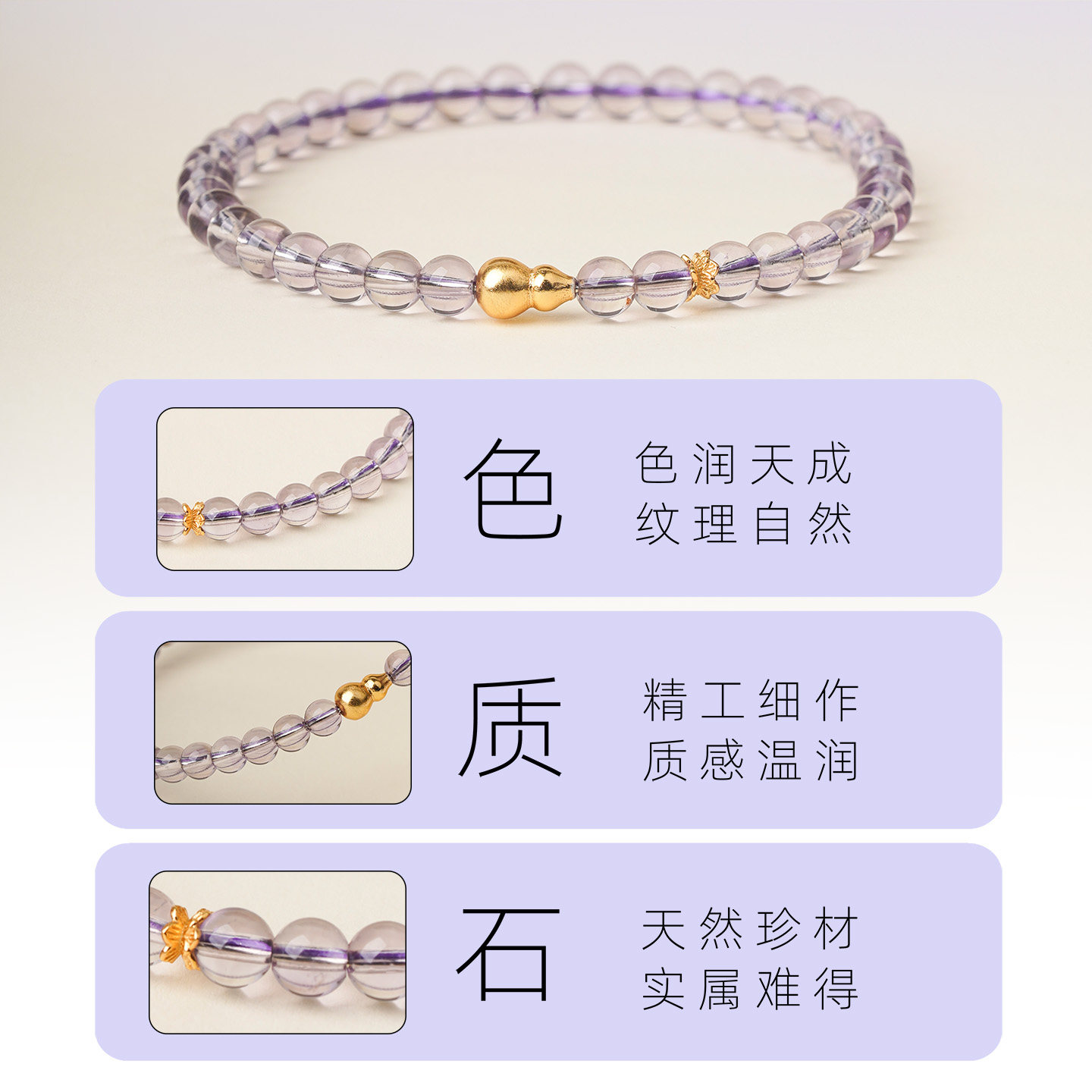 纯天然浅色紫水晶8A净体紫色水晶手串女葫芦转运珠旺财运事业手链