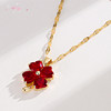 儿童项链钛钢红色四叶草水晶吊坠不褪色锁骨链送学生女孩生日礼物