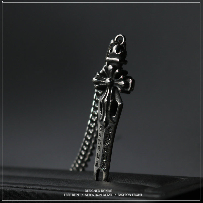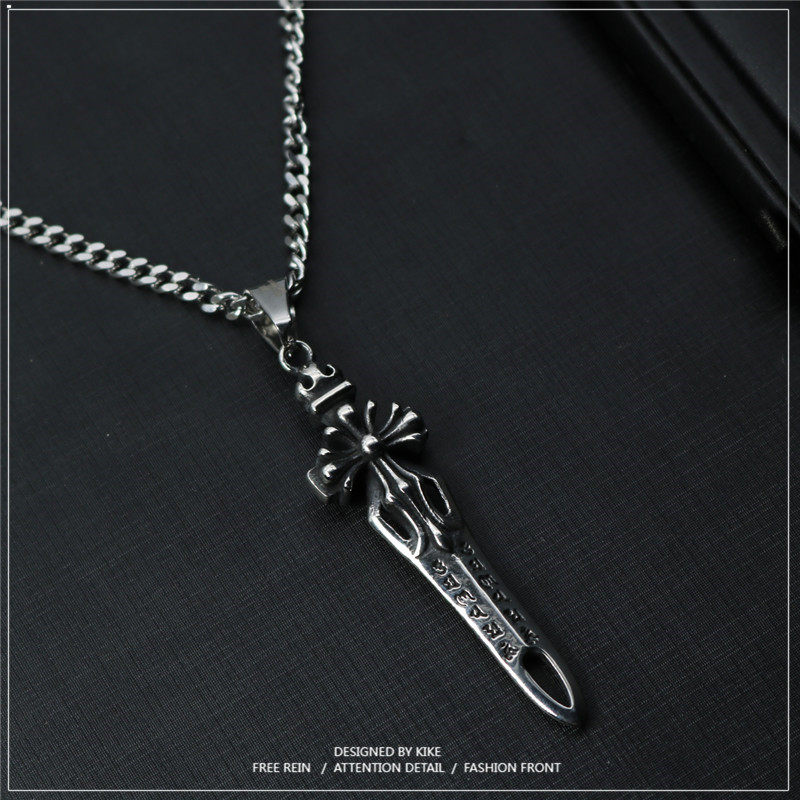 日韩时尚款复古兵器潮男嘻哈项链挂饰男钛钢女长款小众刀剑中国风