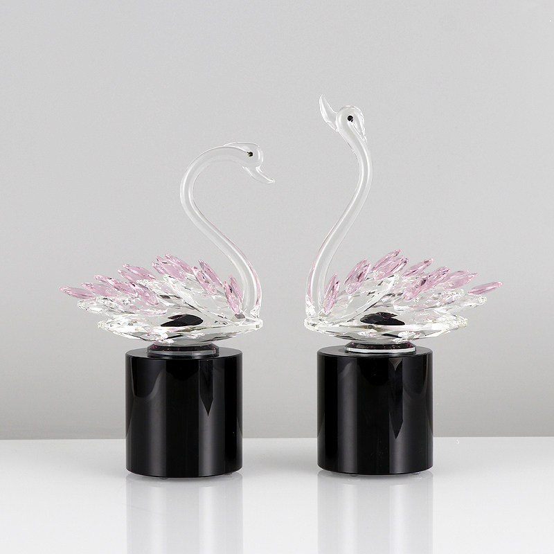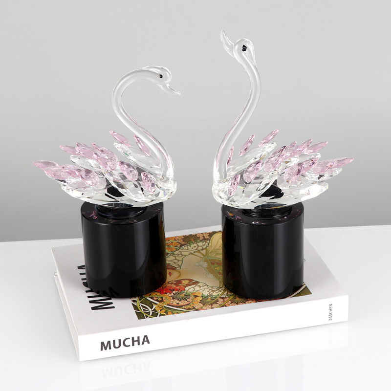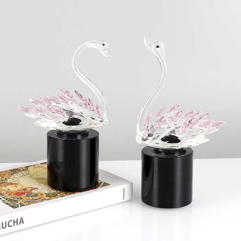 简约奢华天然萌粉水晶天鹅家居摆件客厅茶几玄关样板间装饰工艺品