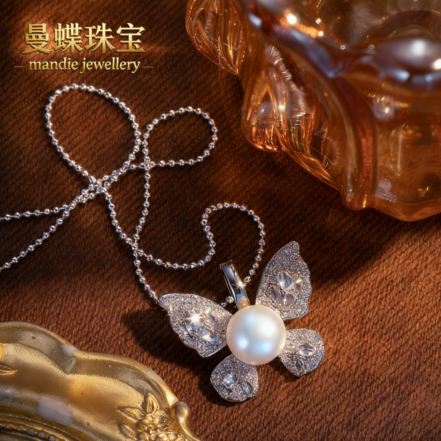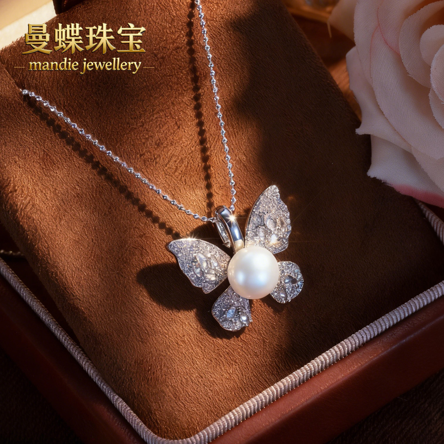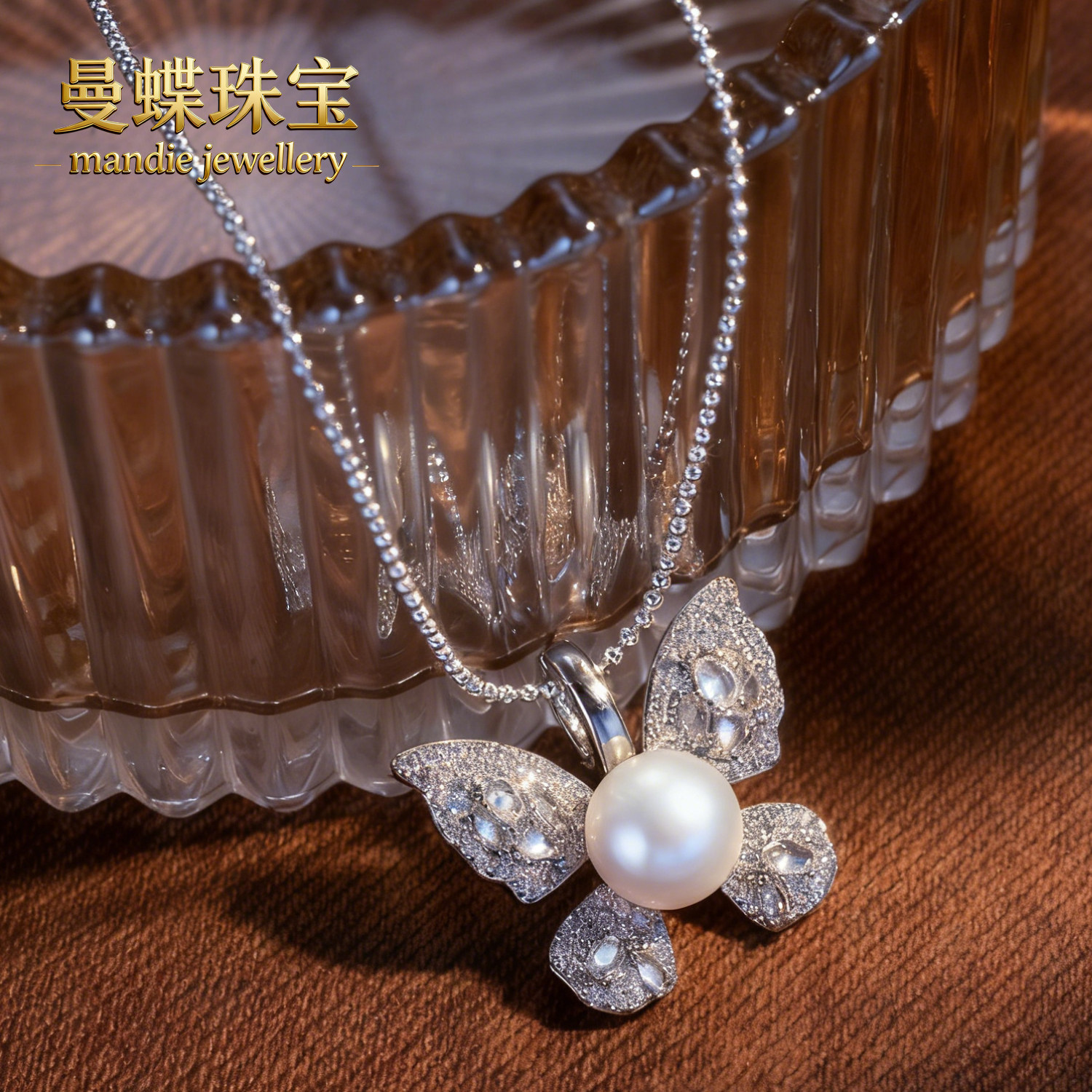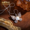 天然无核淡水真珍珠白色蝴蝶款5A极光紫色支持复检可刮粉珍珠吊坠