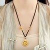 古风罗盘镂空五福圆满毛衣链高档可调节优雅古典福禄黑绳沙金项链