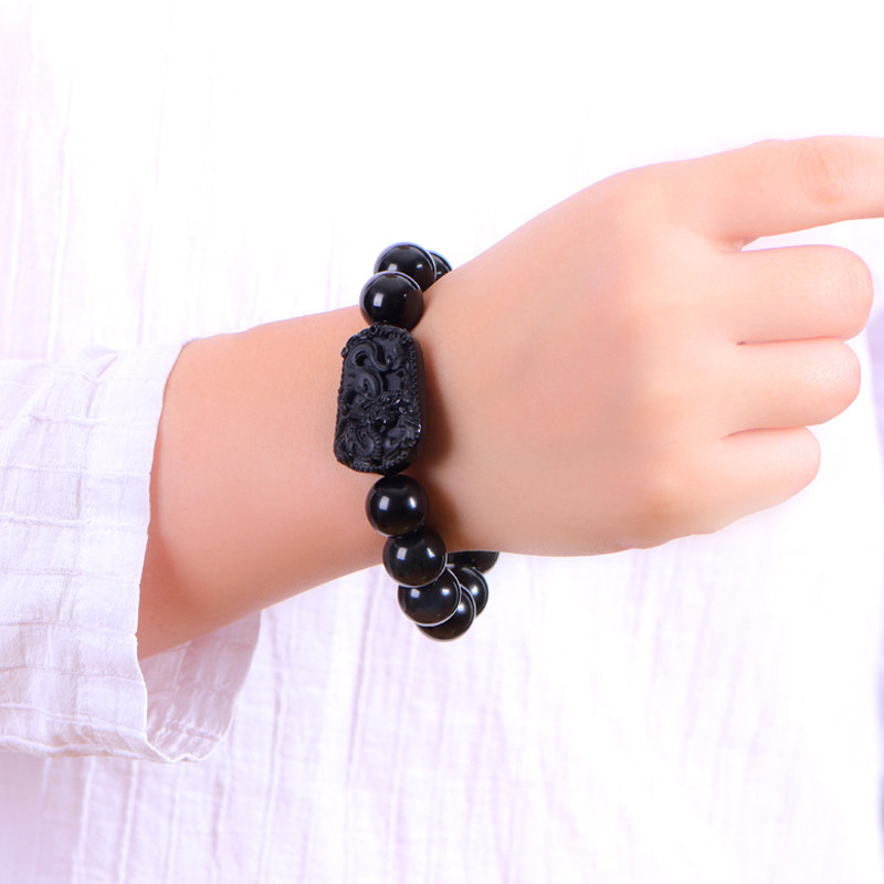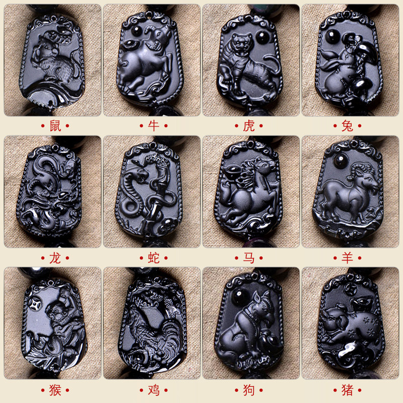 天然黑曜石生肖手链黑水晶鼠牛虎兔龙蛇马羊猴鸡狗猪手串礼物情侣