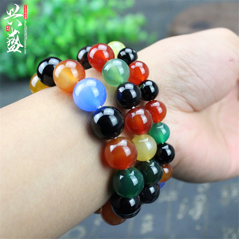 七彩玛瑙手链 水晶玛瑙玉髓水晶手串 多宝饰品时尚手链男女款