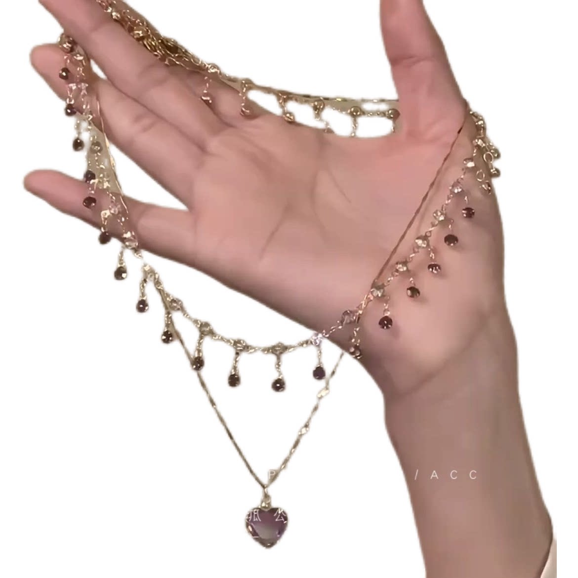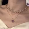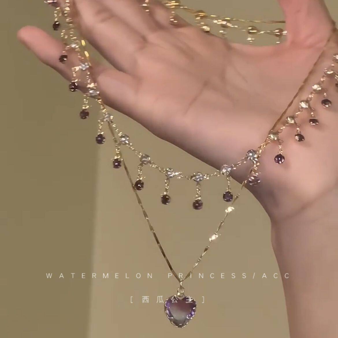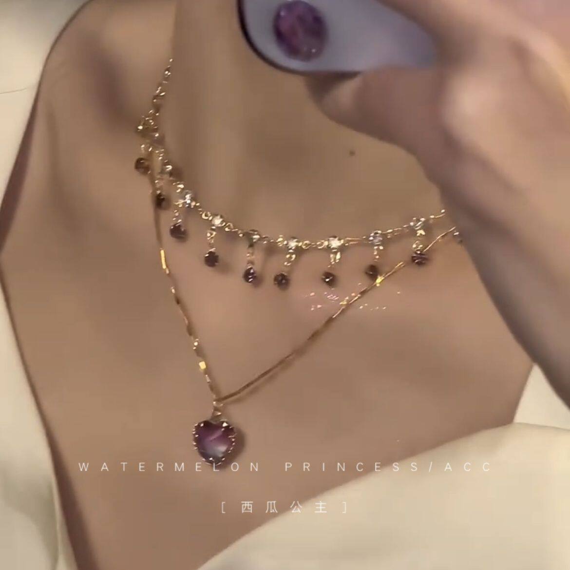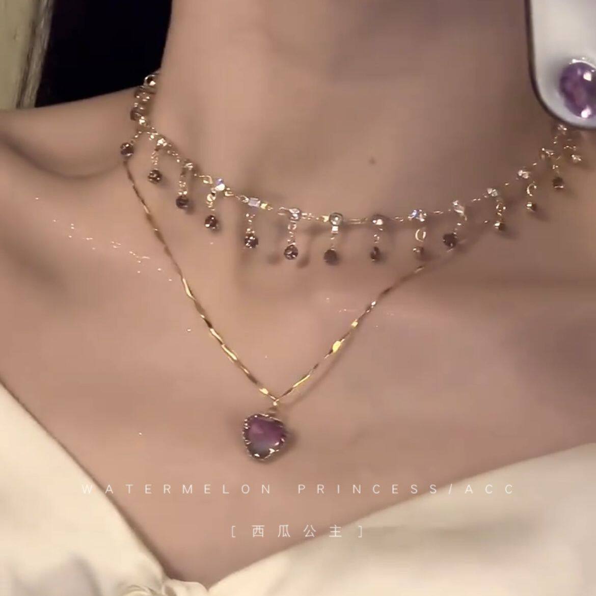 「紫霞仙子」紫色爱心项链女款2024新款爆款超仙美双层叠戴锁骨链