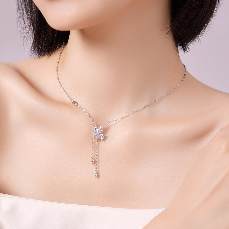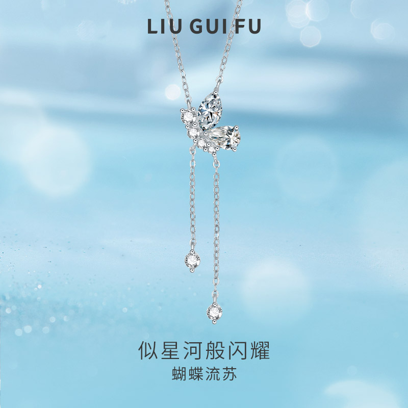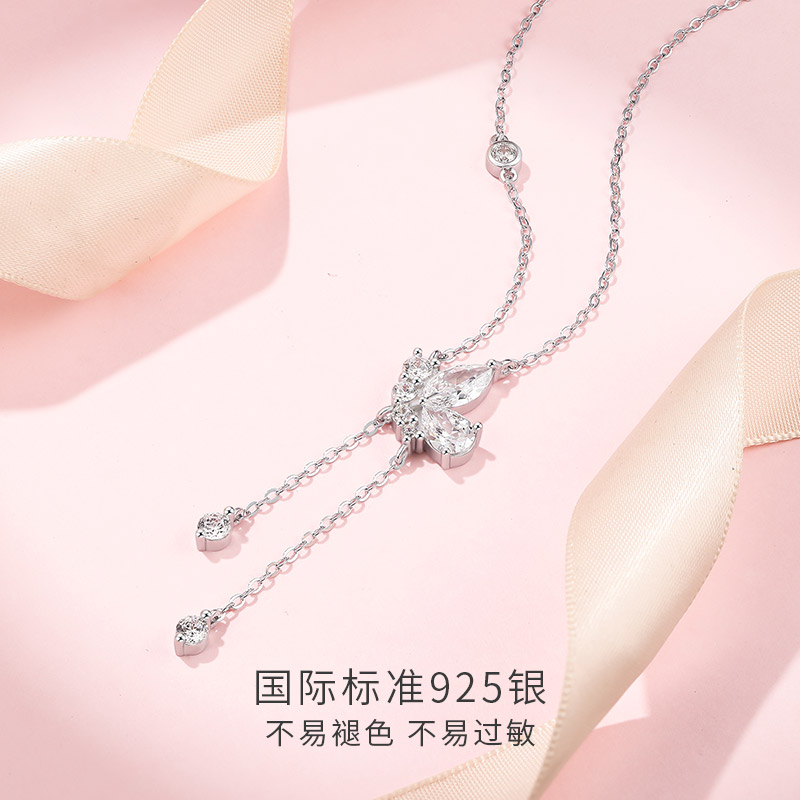 六桂福蝴蝶流苏项链925纯银女轻奢小众高级感套链颈链锁骨链送礼