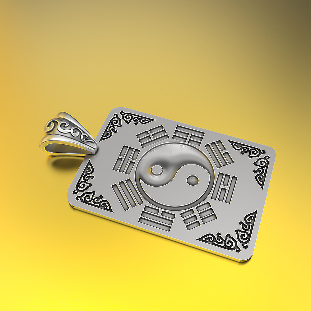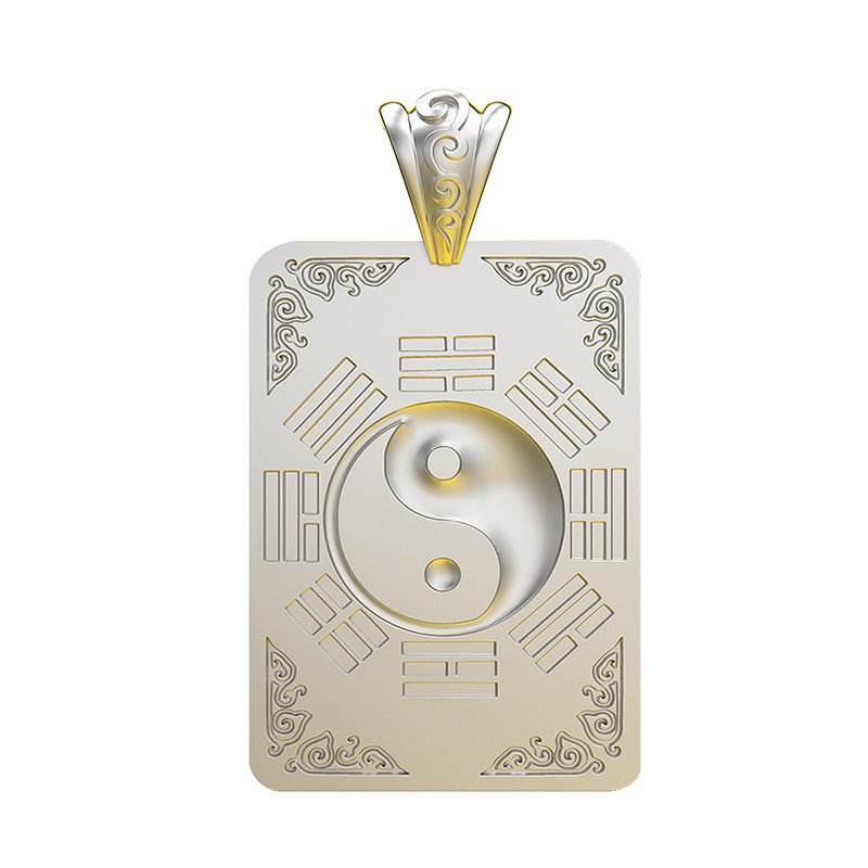 山鬼花钱加大版实心纯银吊坠平安扣道家项链令牌男女八卦随身车挂