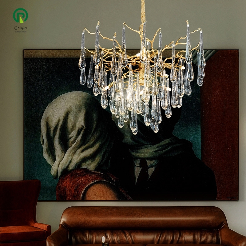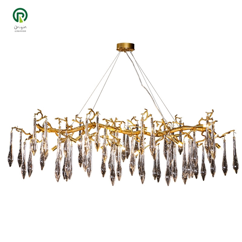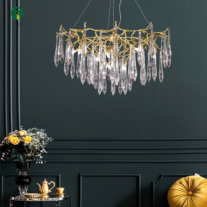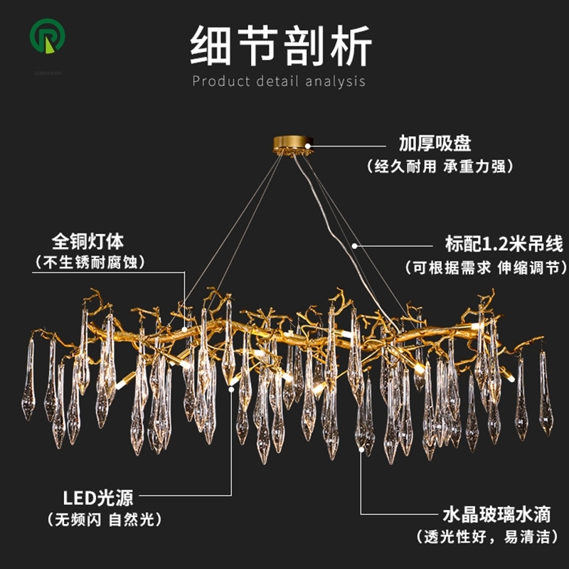 法式轻奢水晶客厅吊灯后现代客厅餐厅卧室时尚全铜树枝复古水滴灯