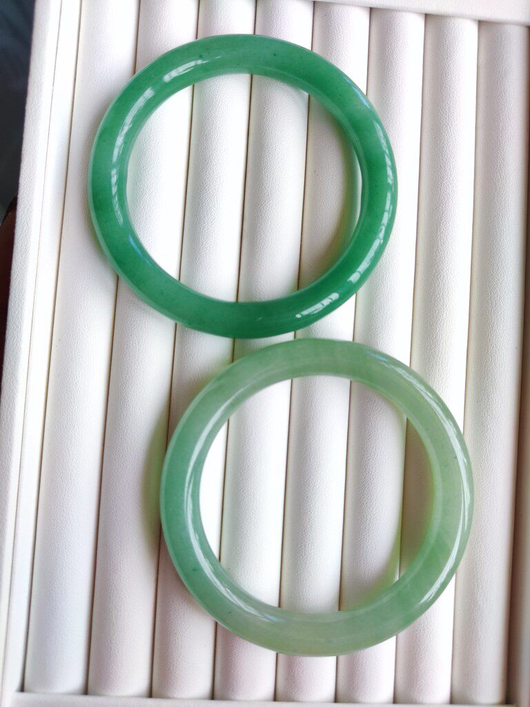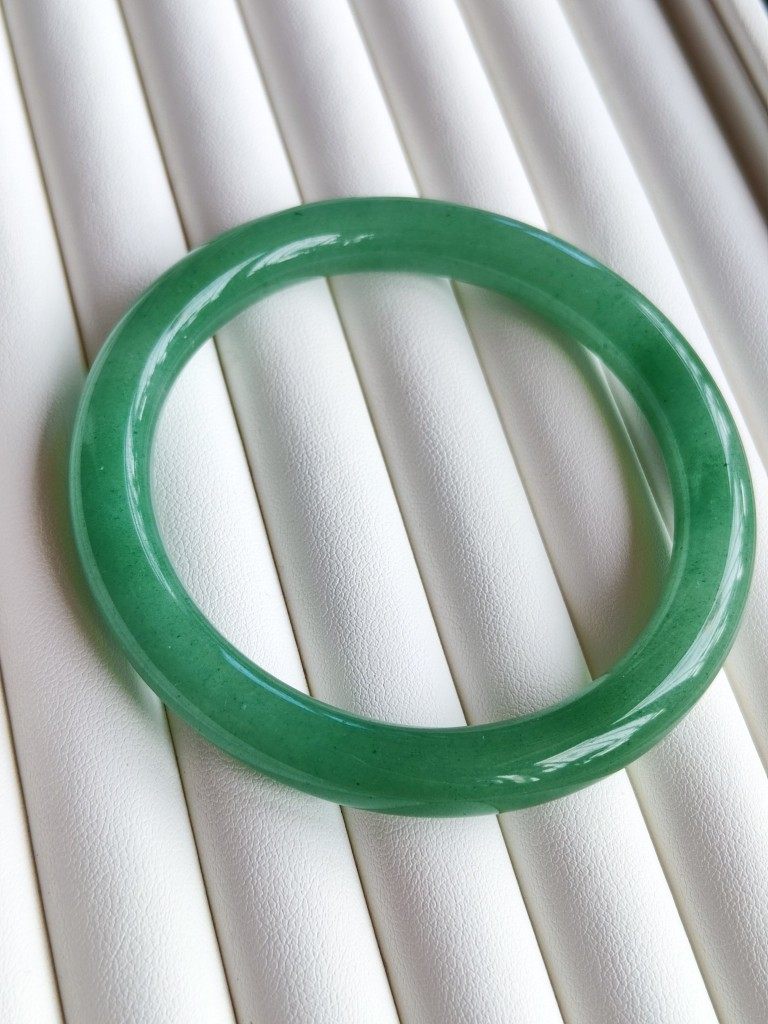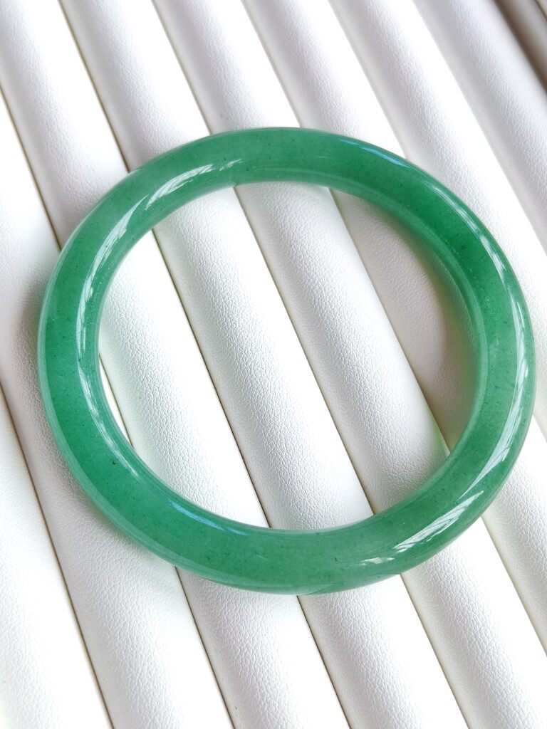 天然东陵玉圆条手镯晴水阳绿豆绿色正品胖圆女款金丝玉佘太翠手镯