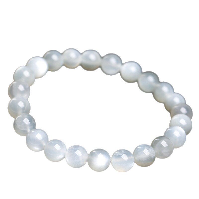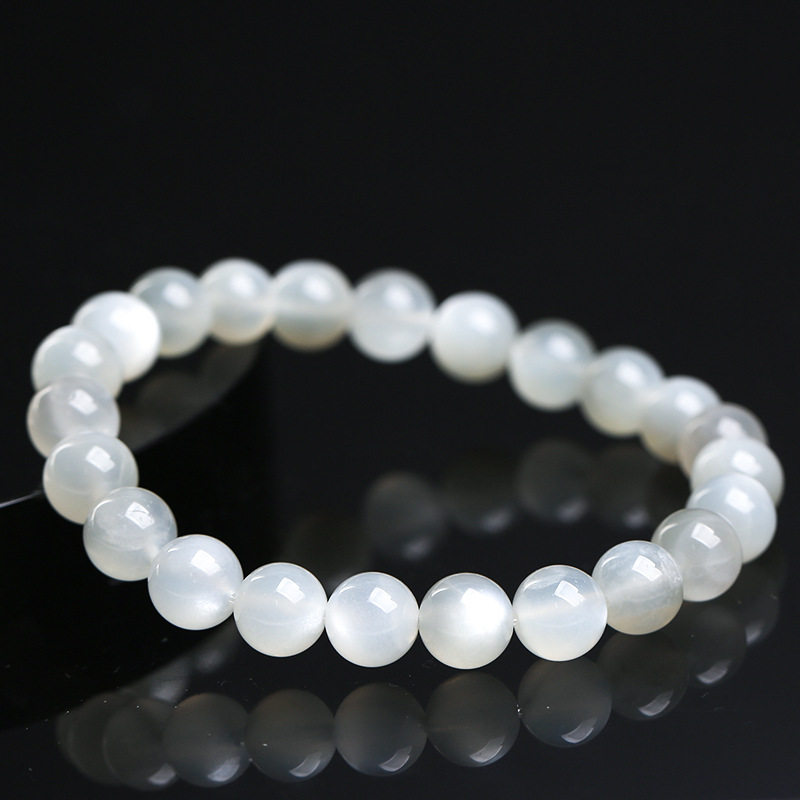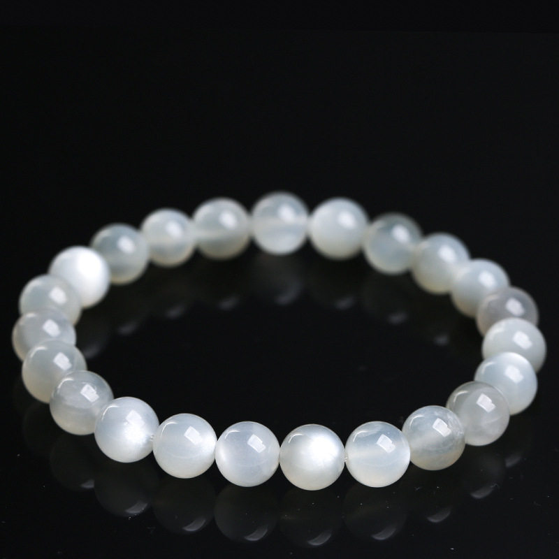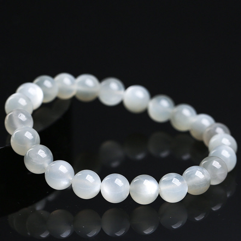 鸿初水晶 天然白月光圆珠手链 白色蓝光月光石手串 厂家直销