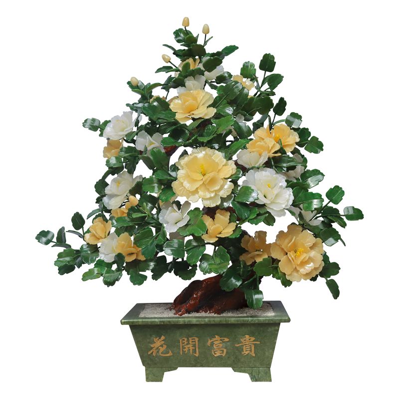 天然玉雕玉石大牡丹花工艺品高档别墅客厅玉器工艺品装饰盆景摆件