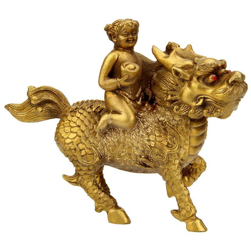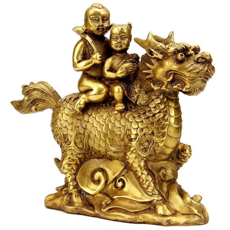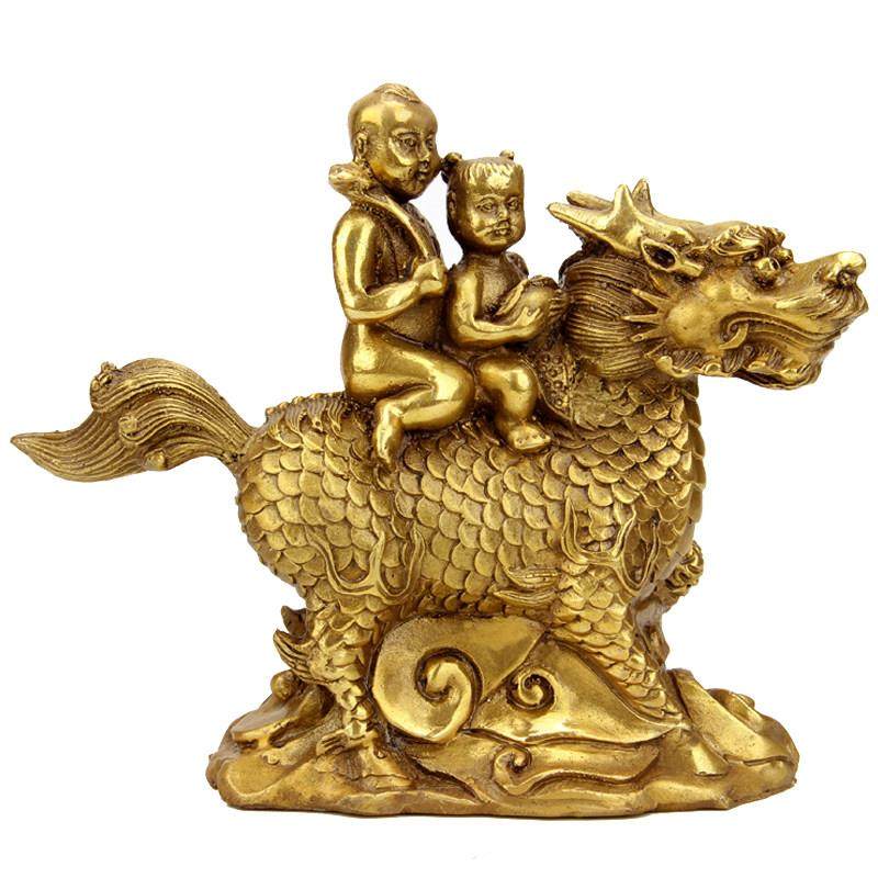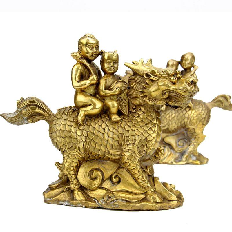 黄铜麒麟送子麒麟摆件麒麟驮男孩女孩一对金童玉女家居创意工艺品