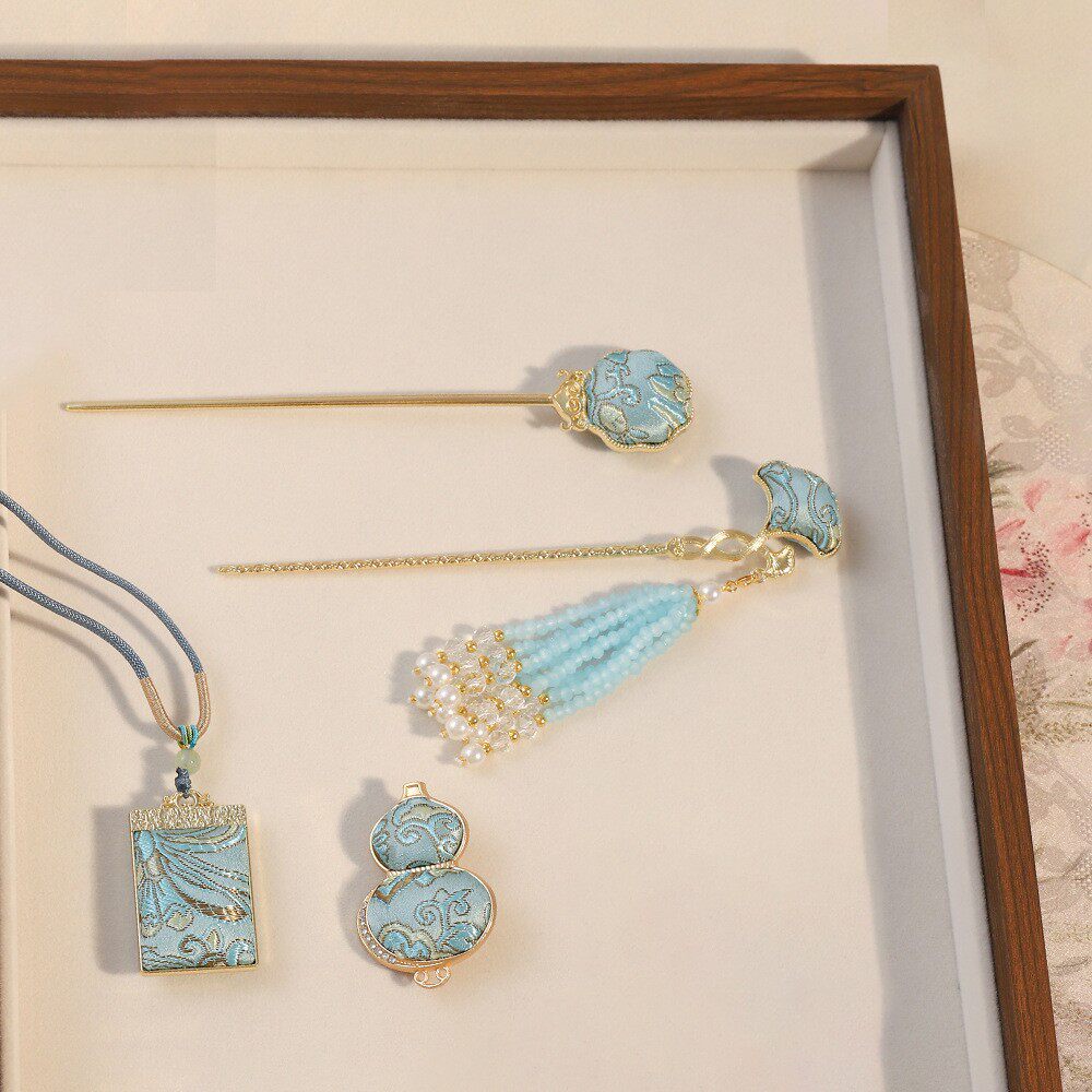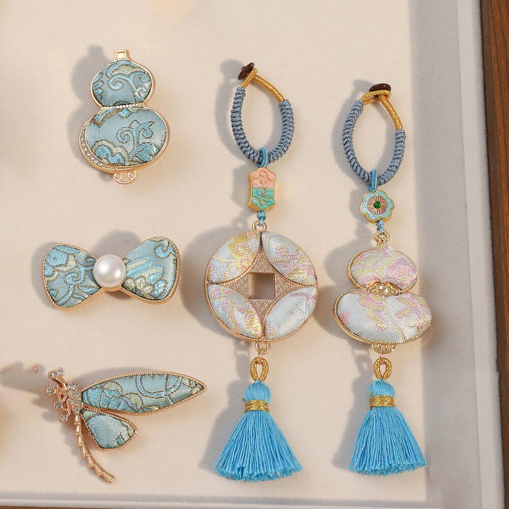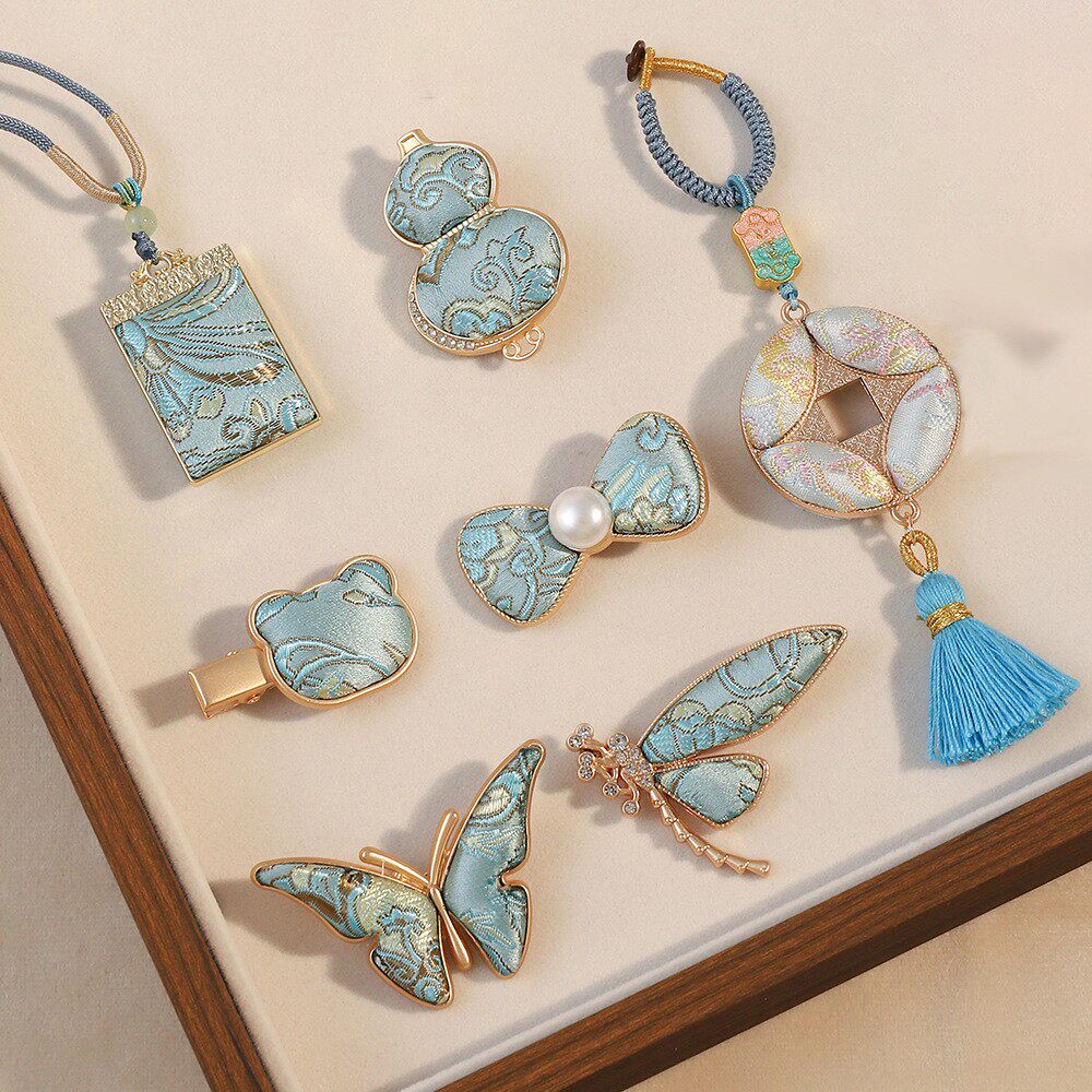 宋锦饰品国风葫芦挂件蝴蝶结发夹流苏发簪新中式汉服配饰高级感