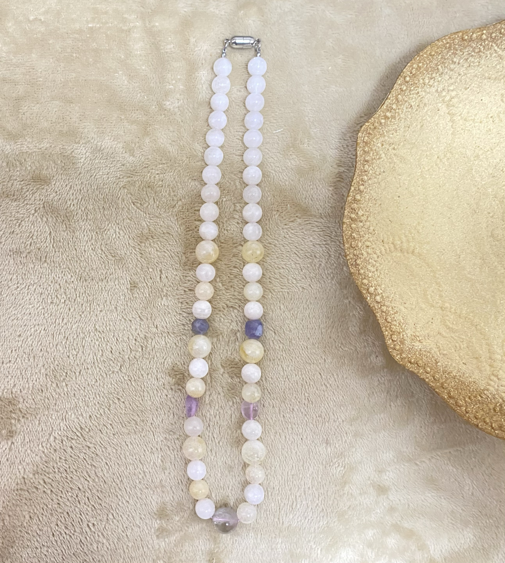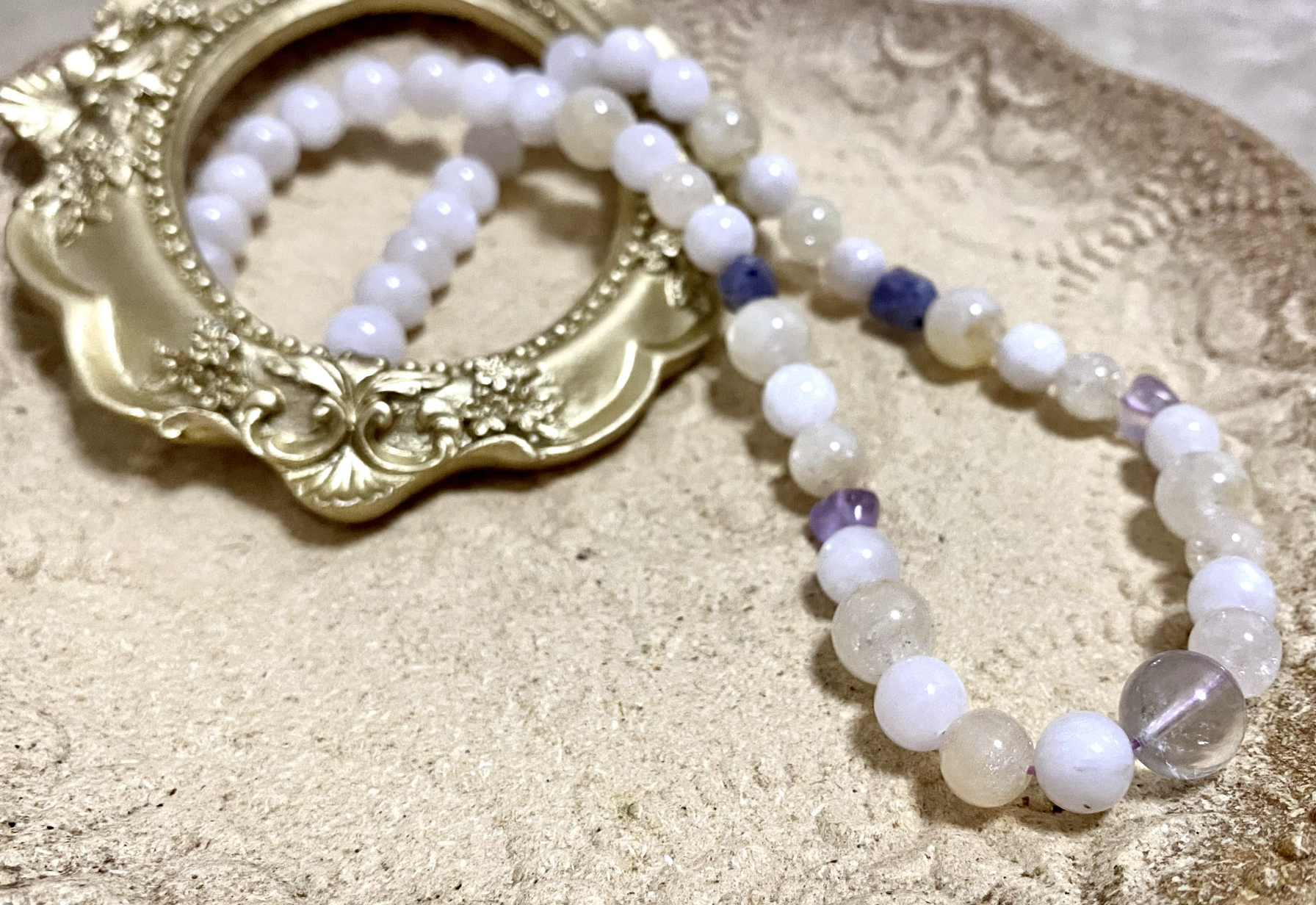 [月之恋]孤品全新手工珠古董风守护黄色透明石深蓝石特惠项链