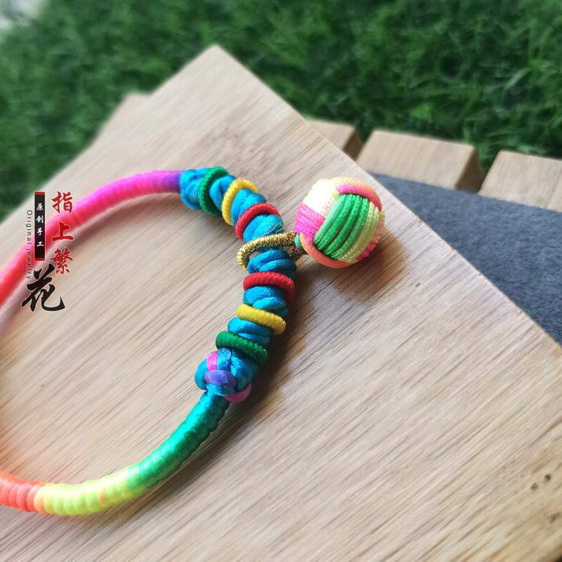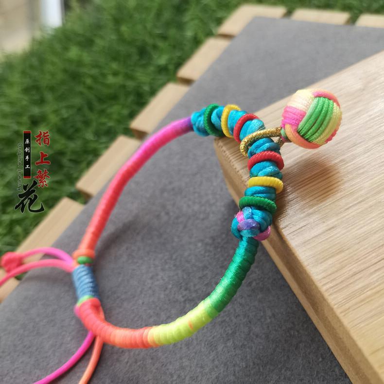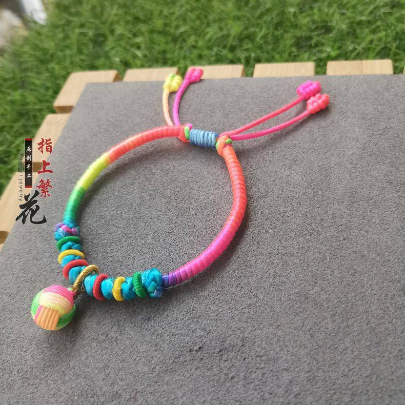 2023新品男女情侣款手工编织手绳手链儿童宝宝婴儿纯棉七彩可调节