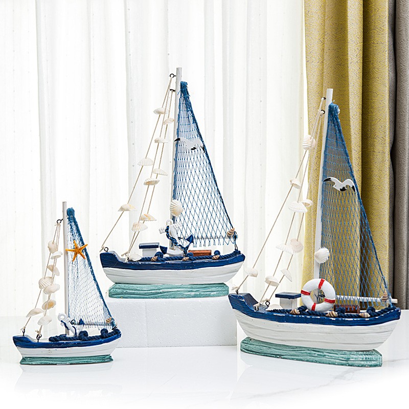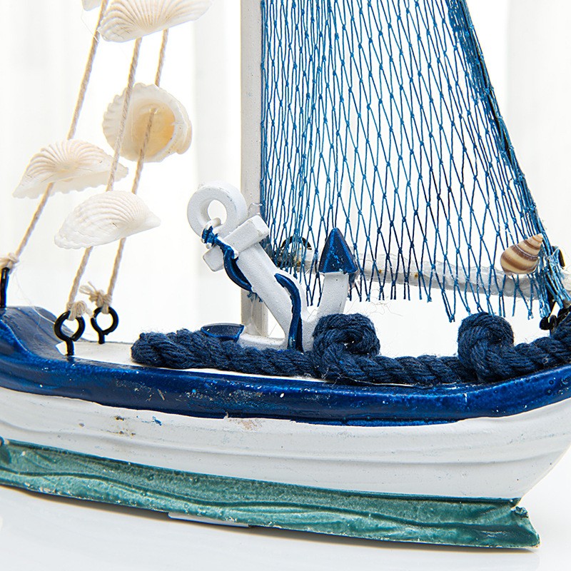 地中海风格实木雕刻贝壳家居装饰桌面摆件工艺品一帆风顺船模定制
