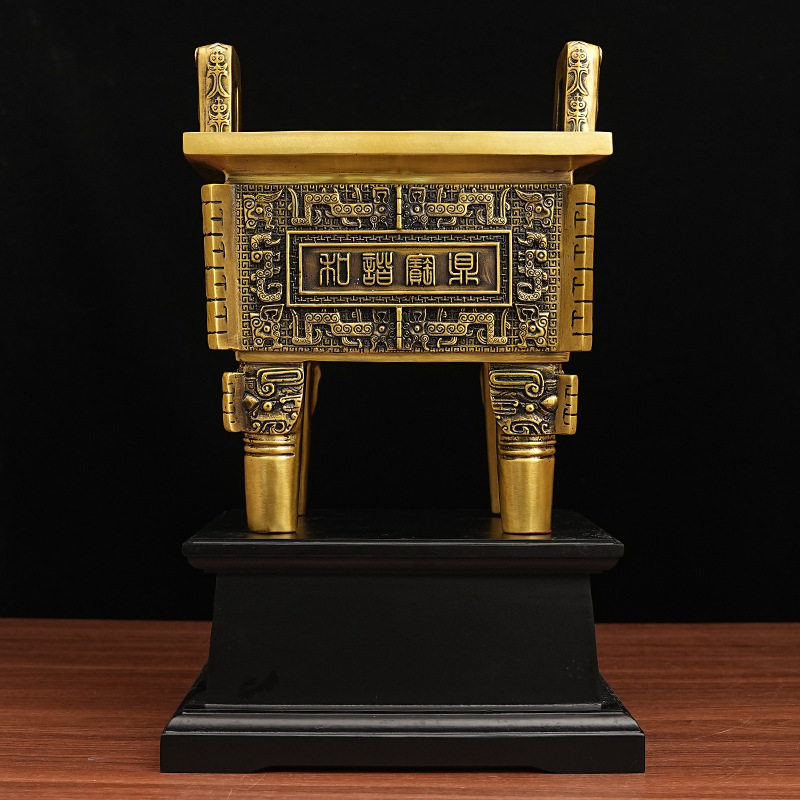 实木黑色鼎底座摆件家居玄关大堂装饰花盆花瓶底座开业庆典