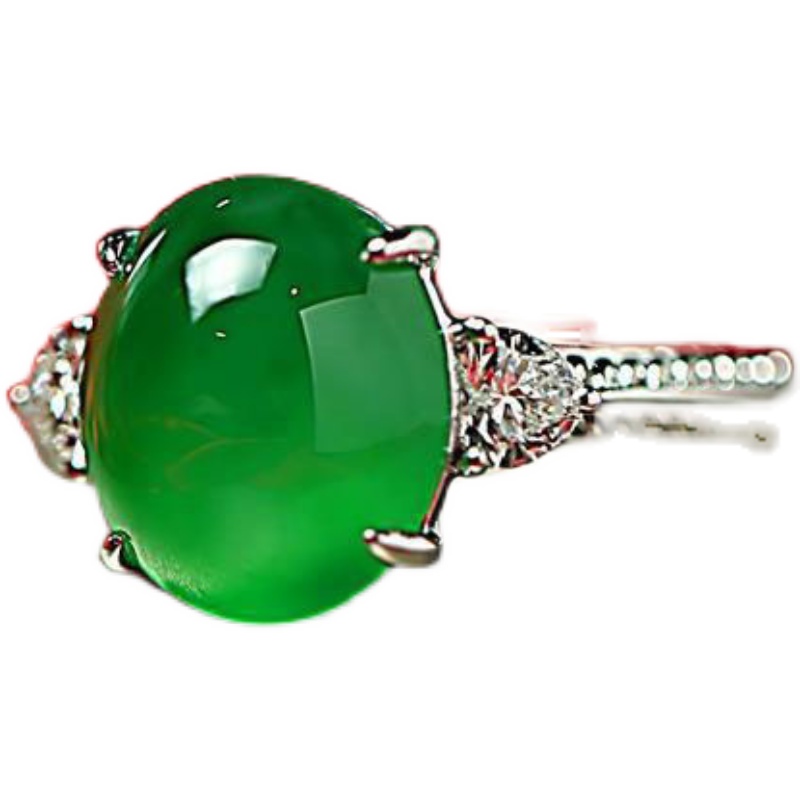 玉髓满绿蛋面S925纯银镶嵌戒圈复古简约大气款戒指开口可调节隔珠