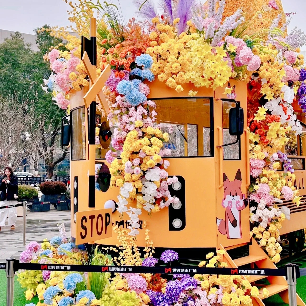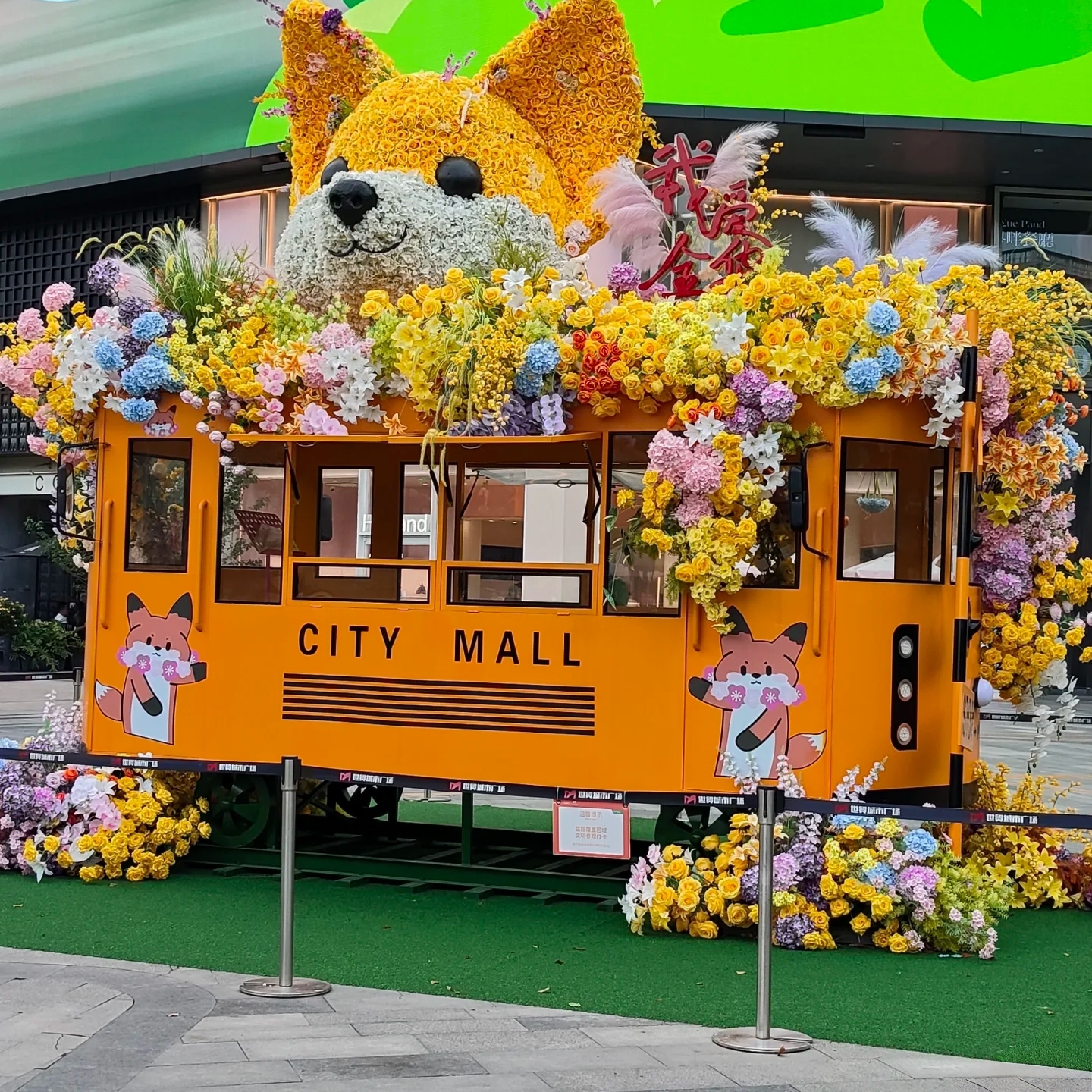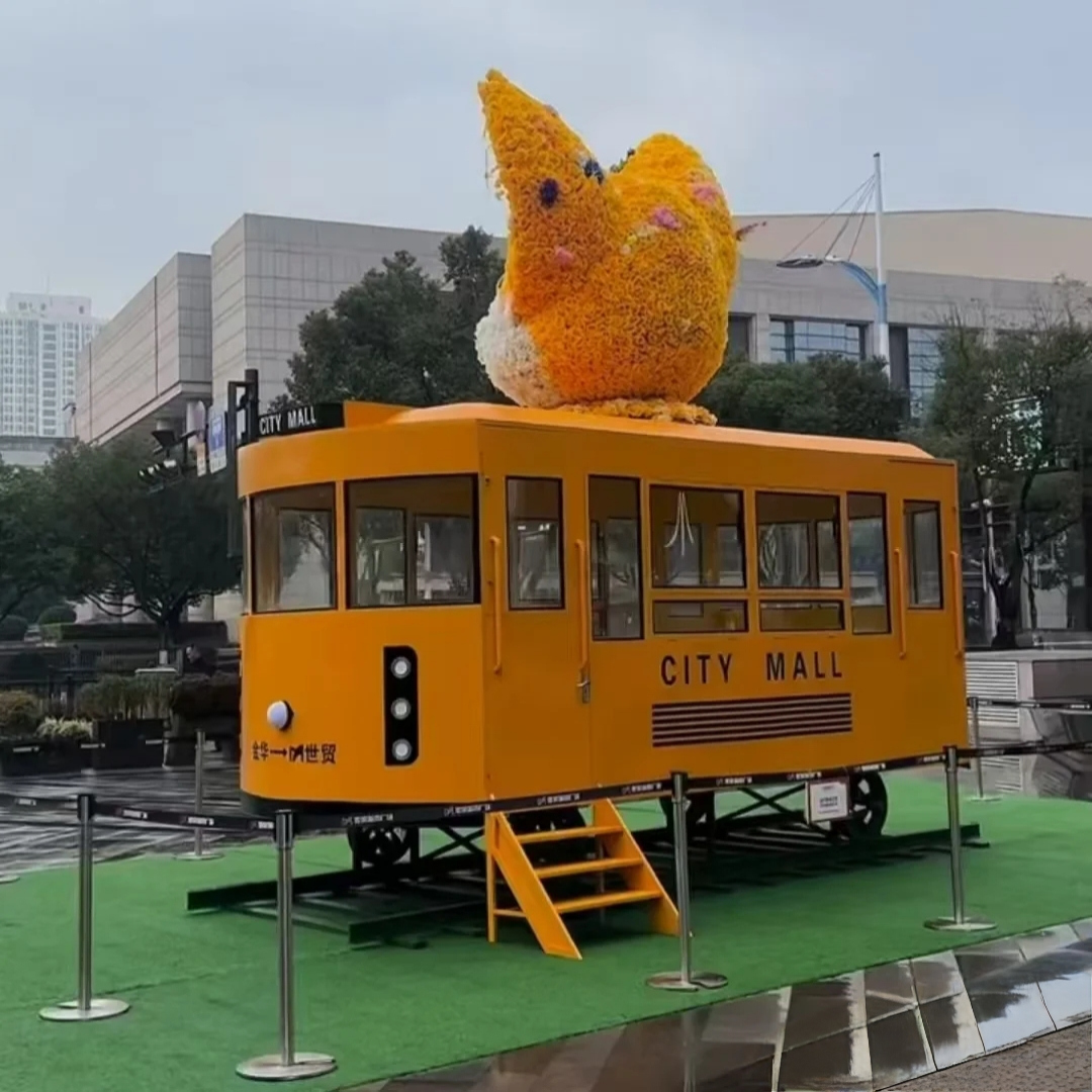 网红打卡道具大型复古有轨电车模型铁艺装饰摆件商场美陈创意装饰