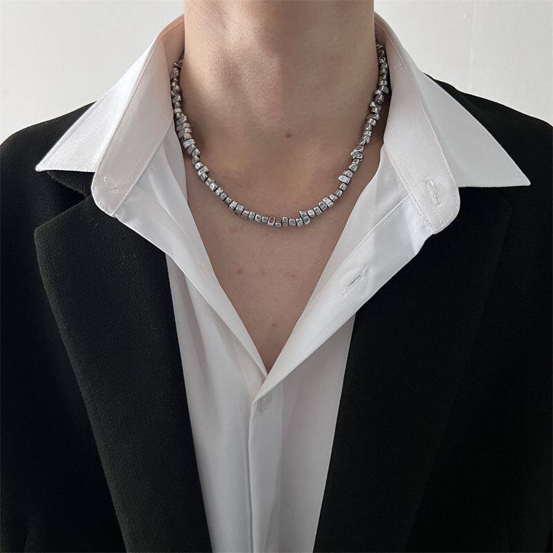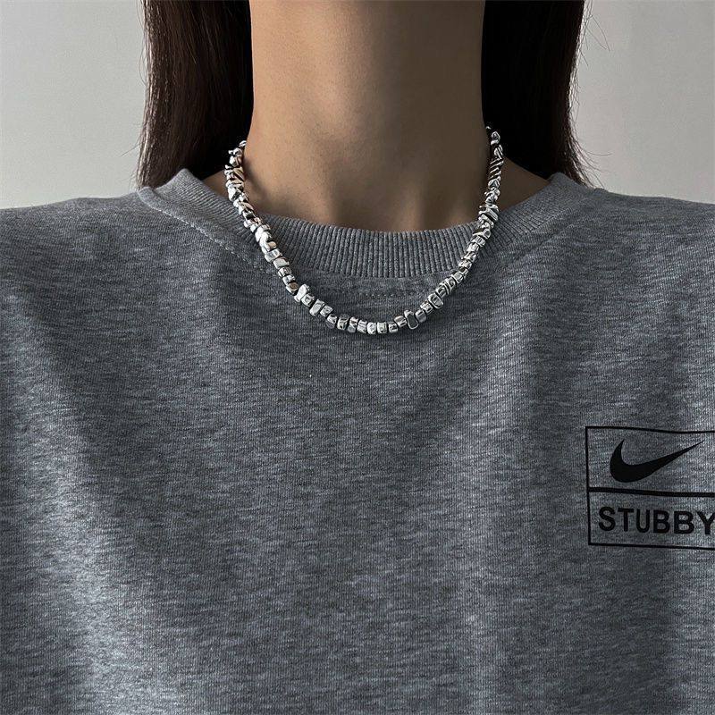 小方块碎石项链男潮ins轻奢小众设计高级感嘻哈冷淡风情侣饰品女