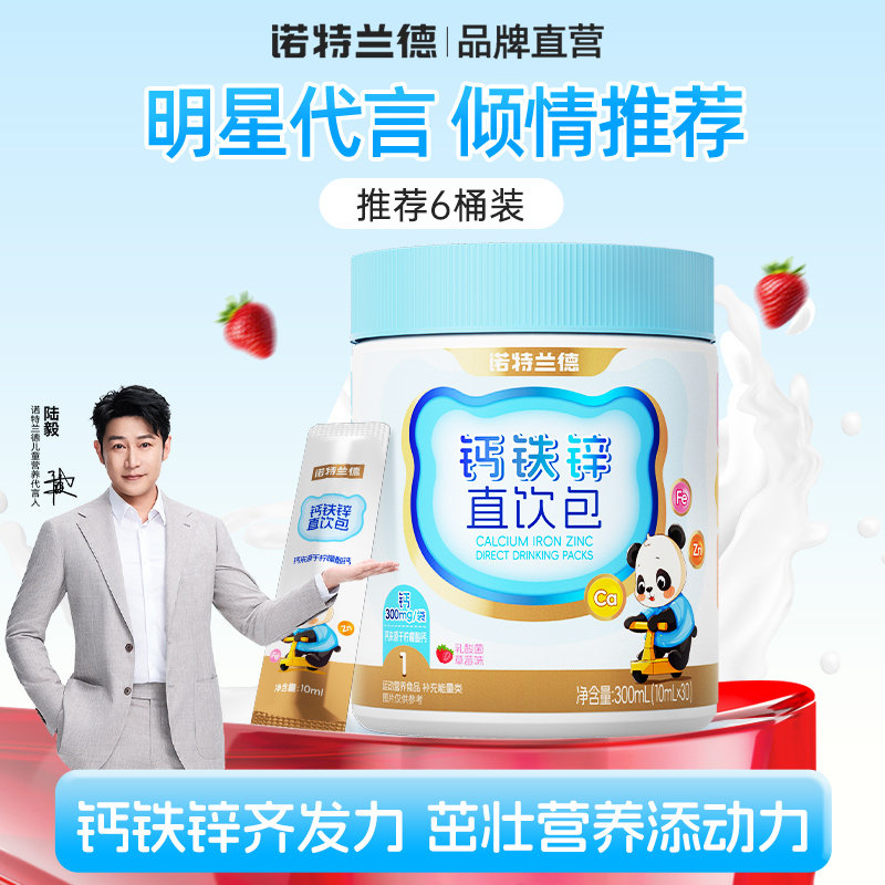陆毅推荐诺特兰德钙铁锌液体钙直饮包营养三宝补非赖氨酸镁口服液