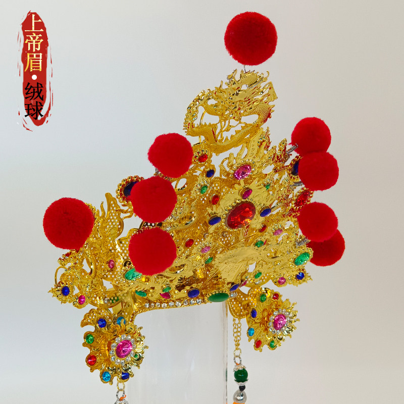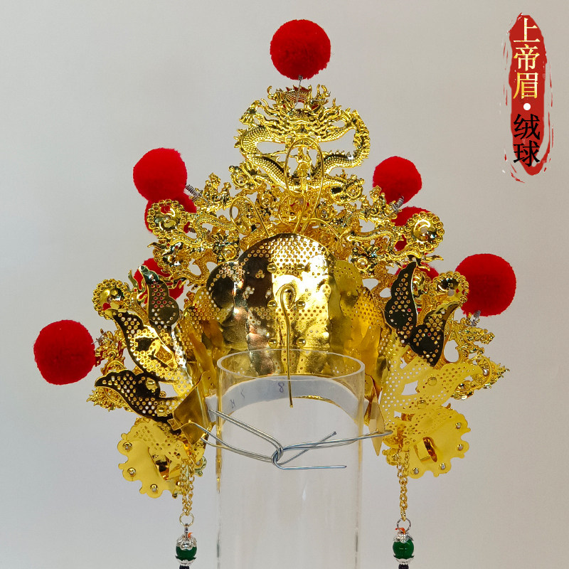 手工台版绒球上帝眉玄天上帝真武大帝神明帽子神像头饰头冠赵公明