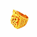 潮男沙金福发财字戒指黄铜硬币打造镀厚金假黄金钢印戒指久不掉色