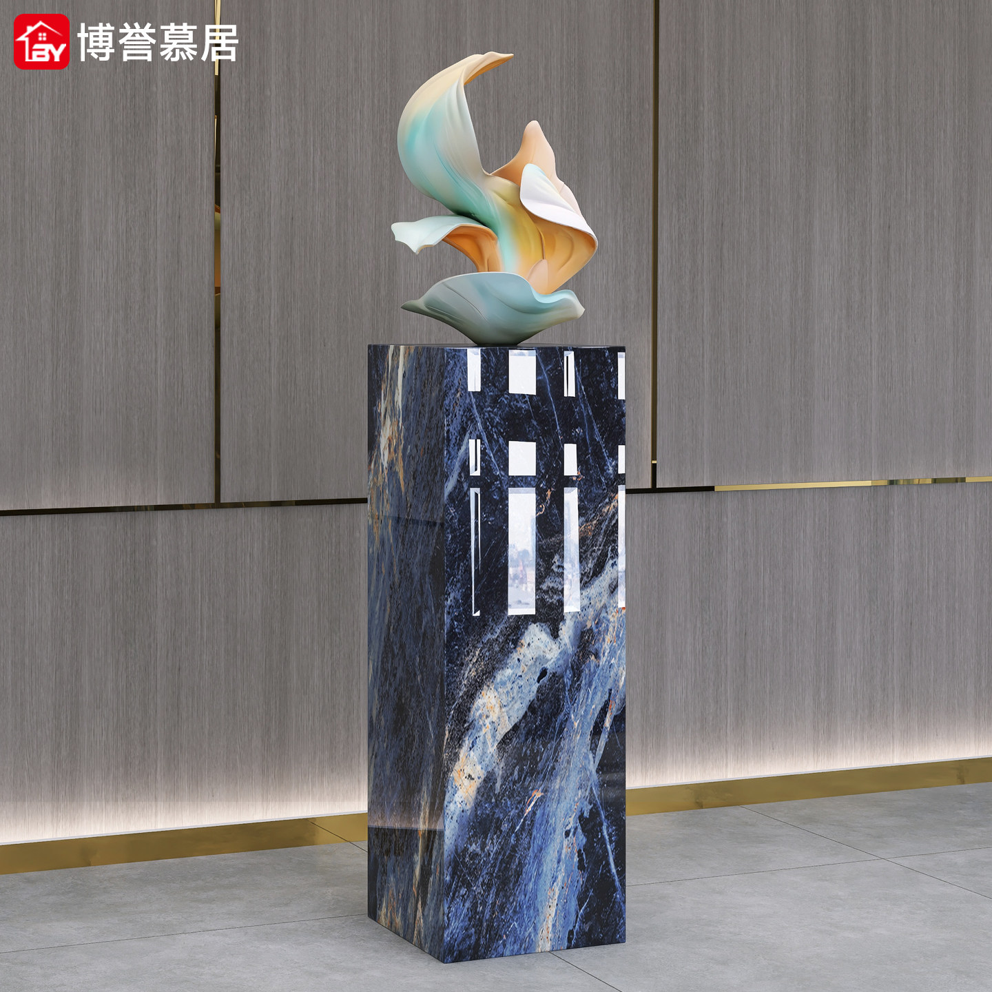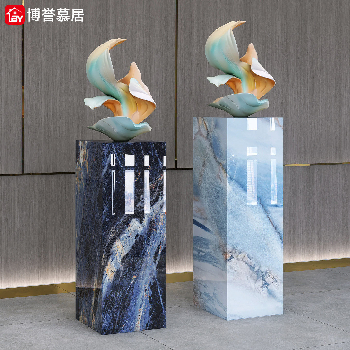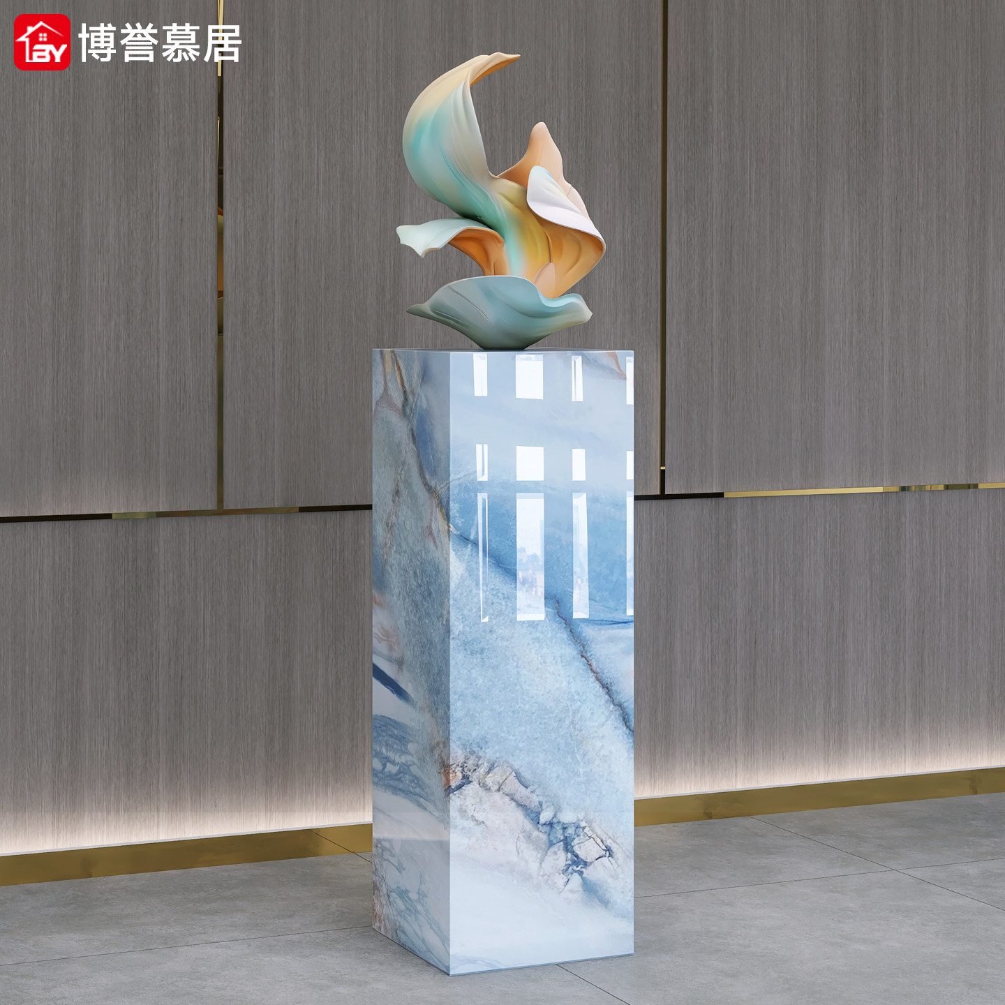 T3高端奢石岩板大理石立柱增高轻奢落地客厅酒店装饰摆件底座