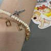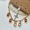 天然淡水珍珠十字架手链黄色流苏水晶手饰叠戴bm女brandymelville