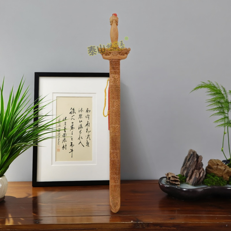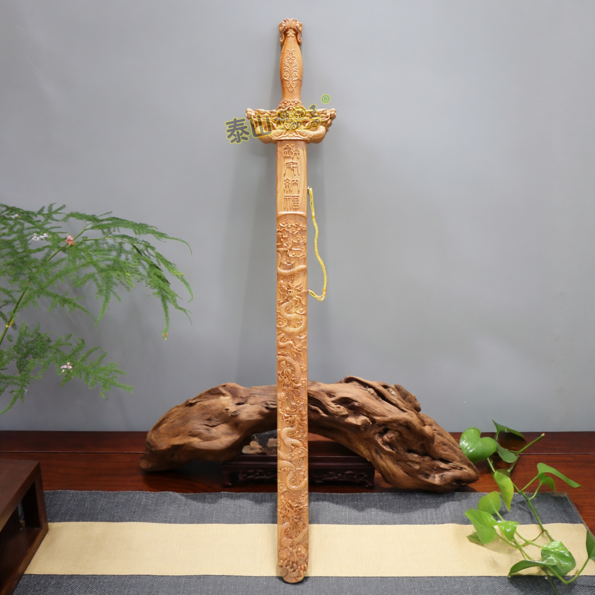 桃木雕刻1.2米宝剑装饰摆件中式古典工艺品家居客厅装饰品