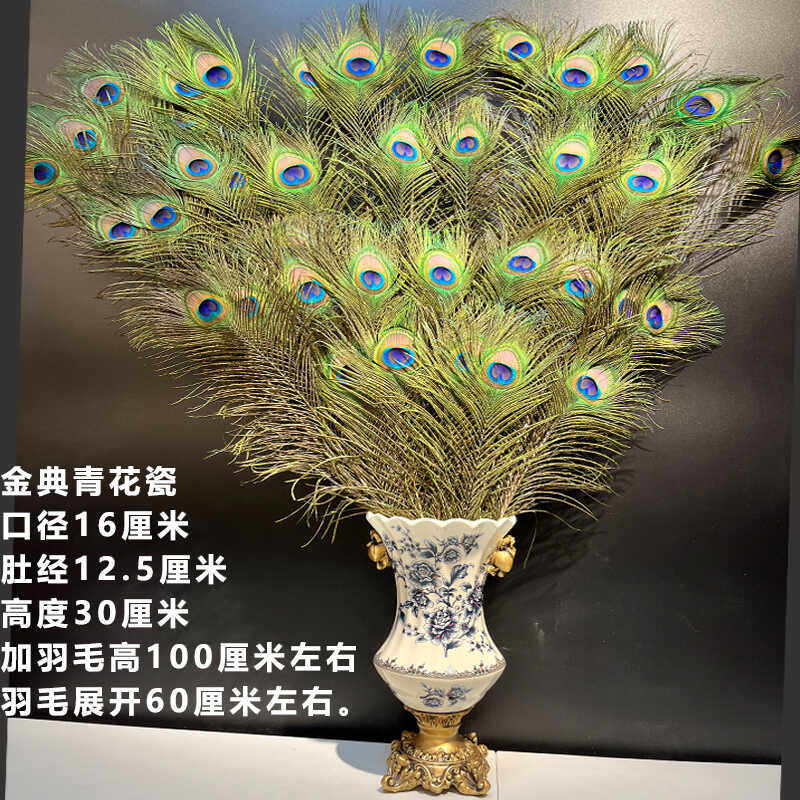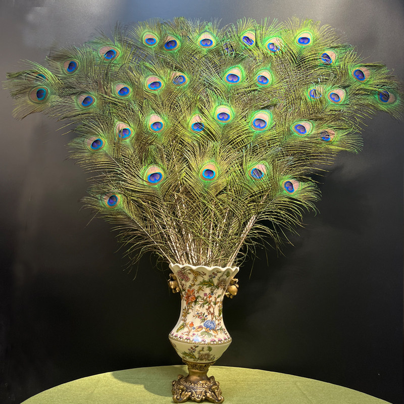进口纯天然真孔雀羽毛翎尾大眼睛花瓶家居摆设客厅装饰工艺品花瓶