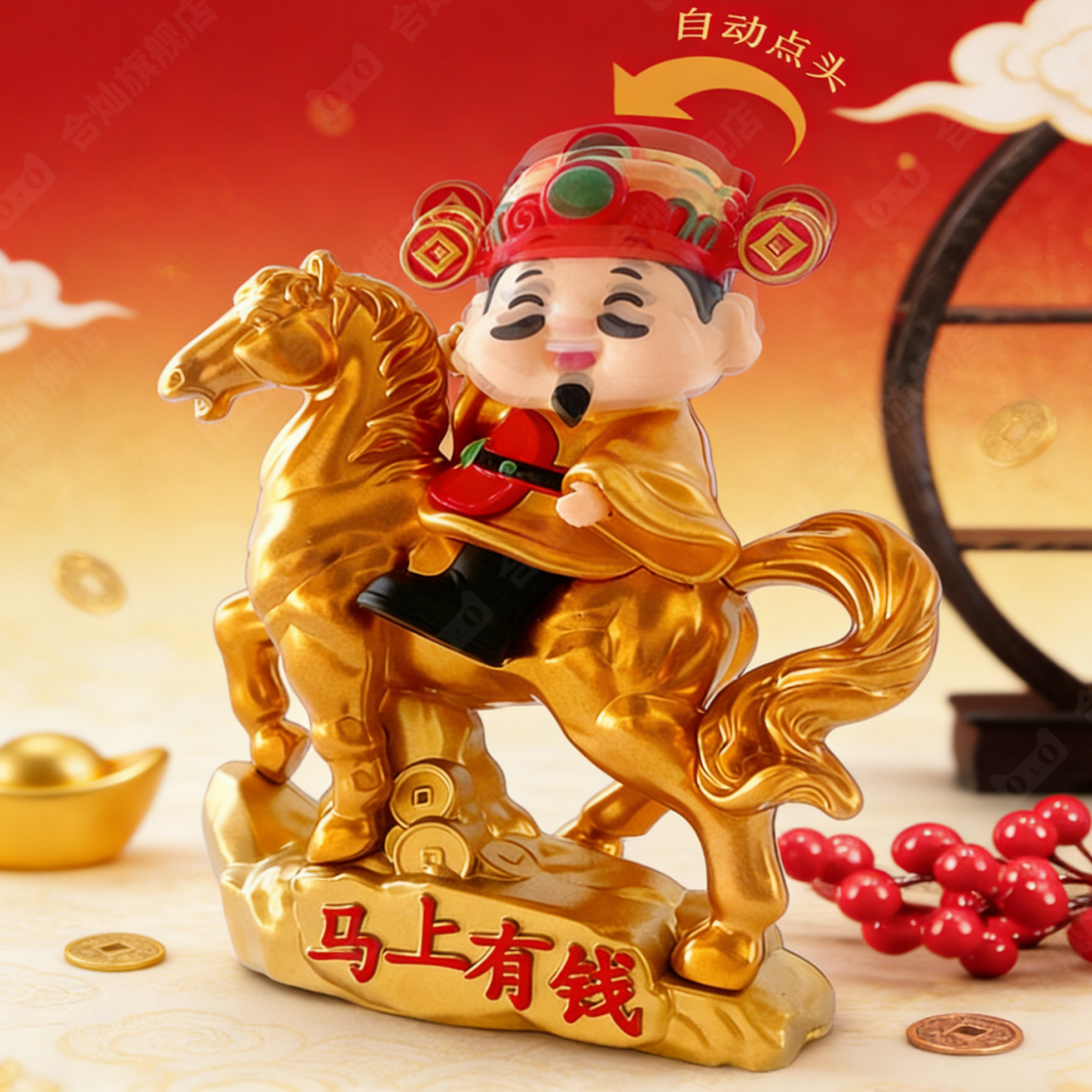 太阳能财神爷车载汽车点头摆件卡通公仔可爱小车内中控台装饰用品