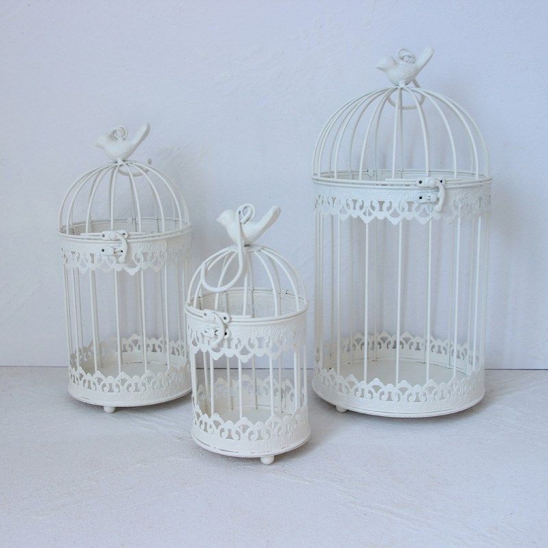 白色装饰鸟笼铁件烛台复古套三可爱家居饰品装饰摆件可挂多肉花盆