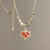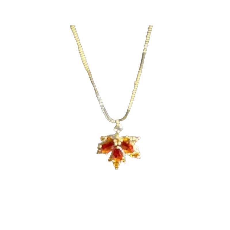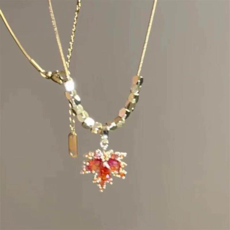 2025听说枫叶是秋天温暖的告白~红色锆石百搭毛衣链高级感吊坠配