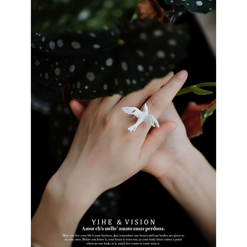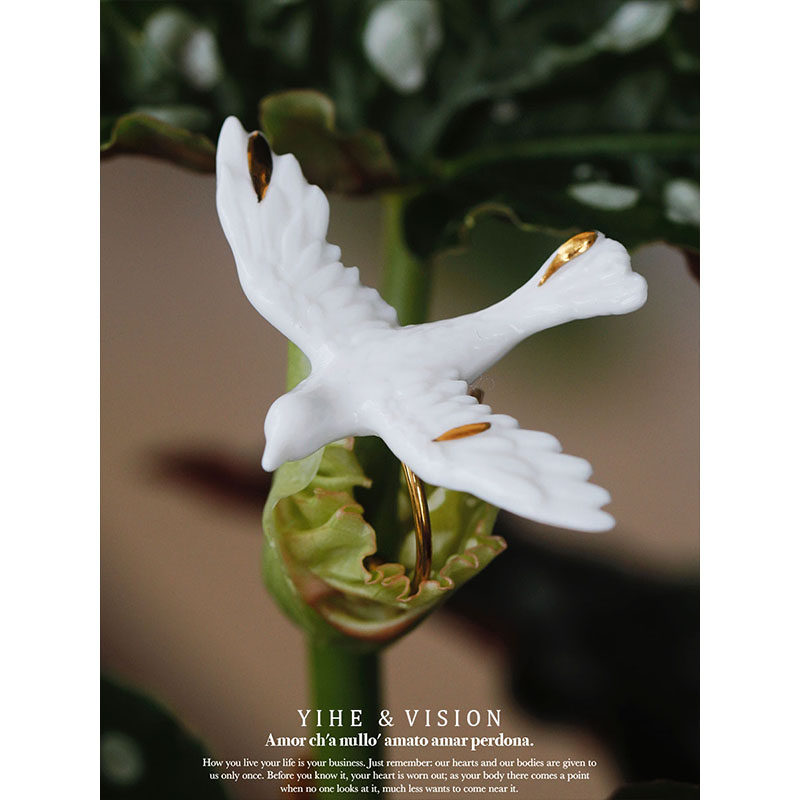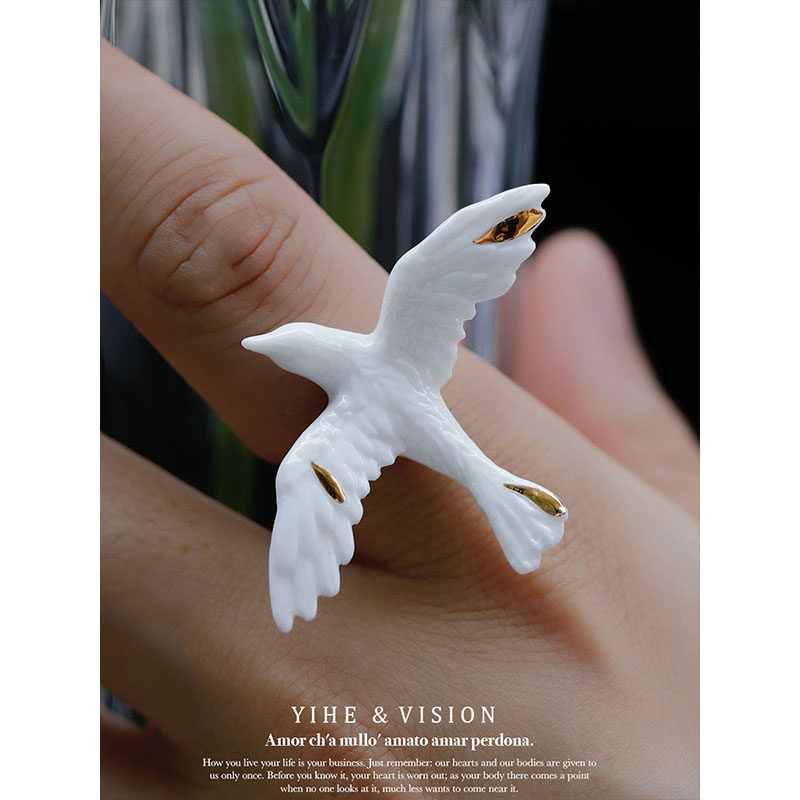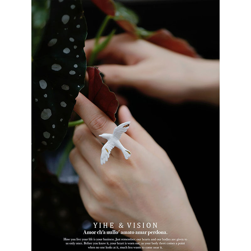 YIHE原创设计【飞鸟】小众文艺有腔调百搭日常显白陶瓷戒指
