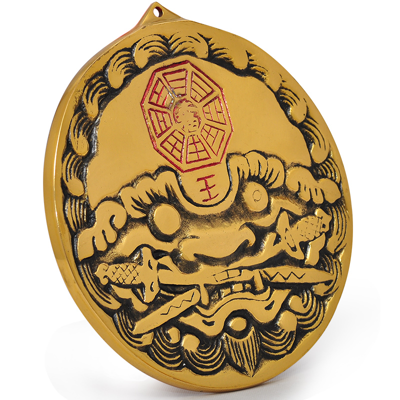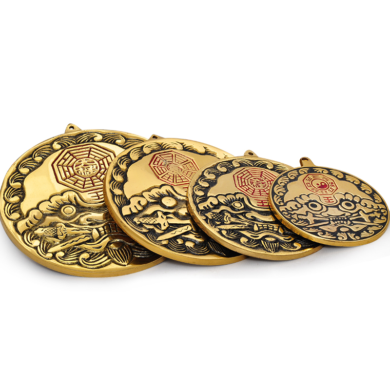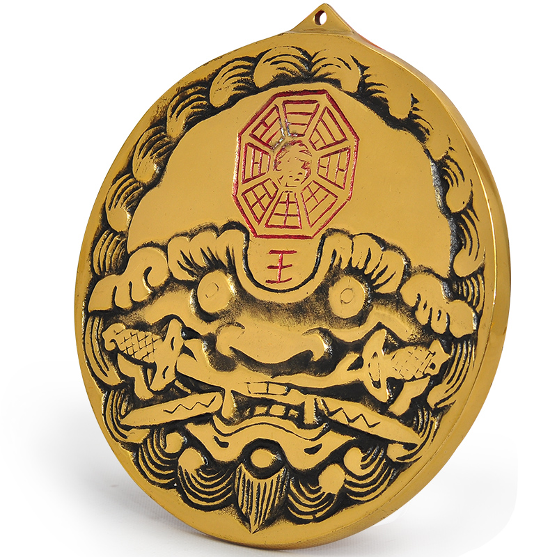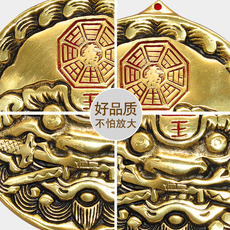 铜虎头八卦虎咬剑挂件铜虎睚眦风水门饰镜门对门冲家居兽头牌摆件