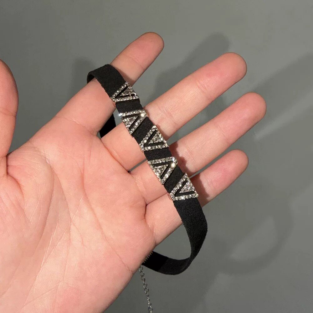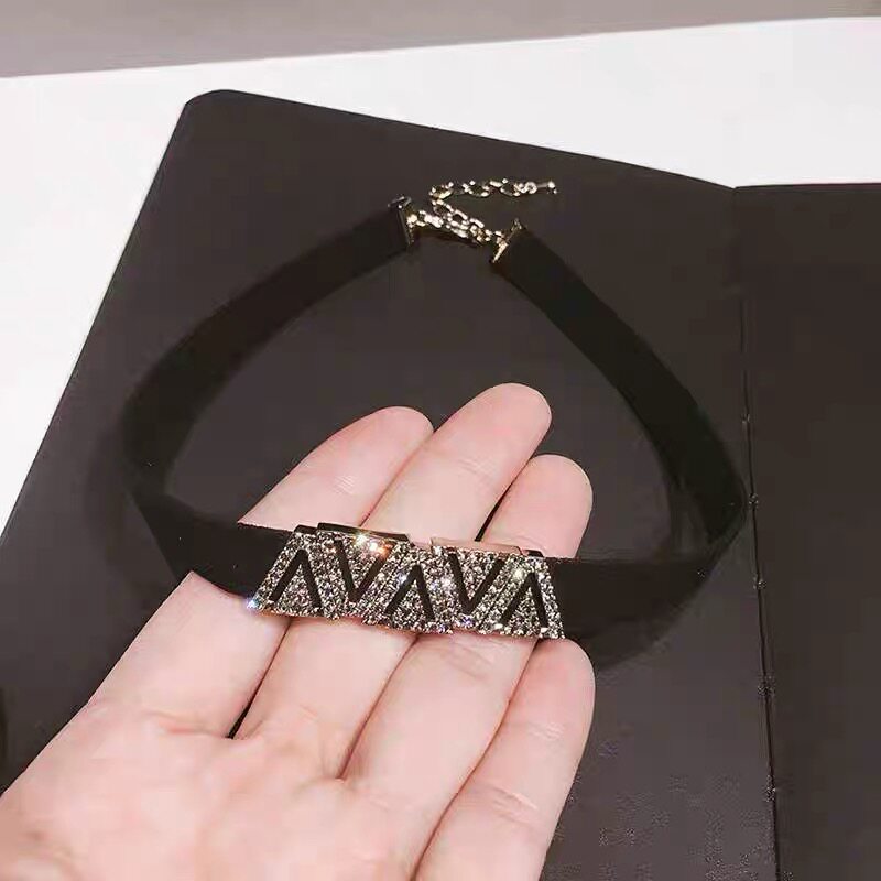 复古女士满钻字母颈圈项链女个性黑色绒布项圈脖链潮朋克锁骨颈带
