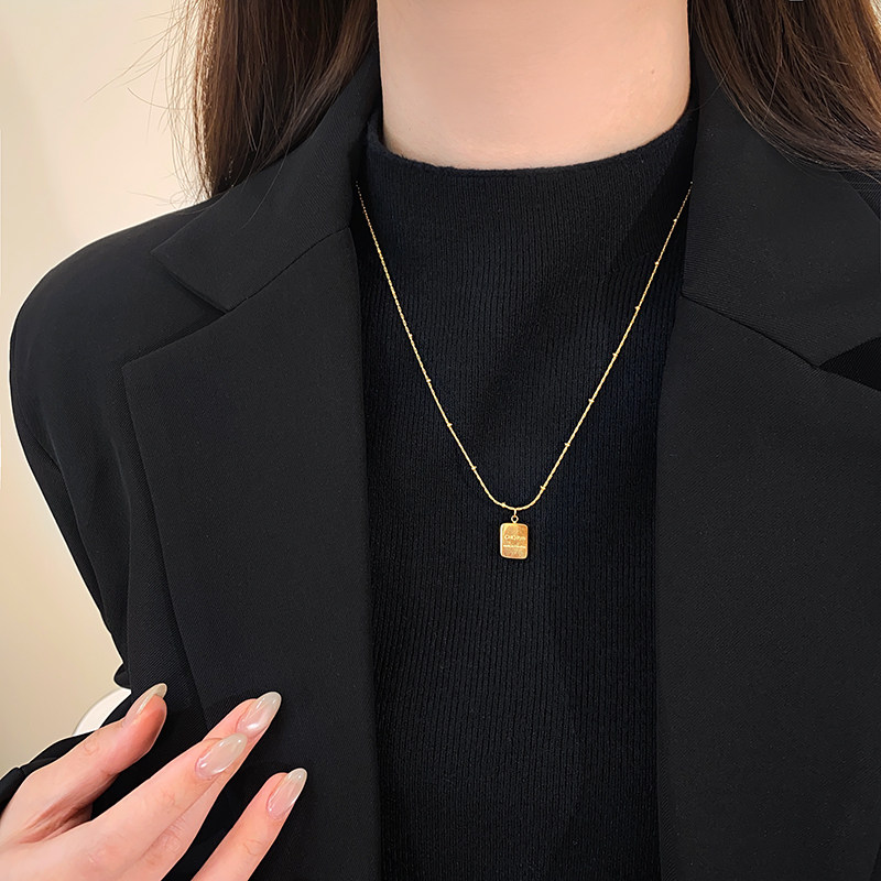 金色小方砖钛钢项链女款轻奢小众2026新款高级感毛衣颈链秋冬配饰