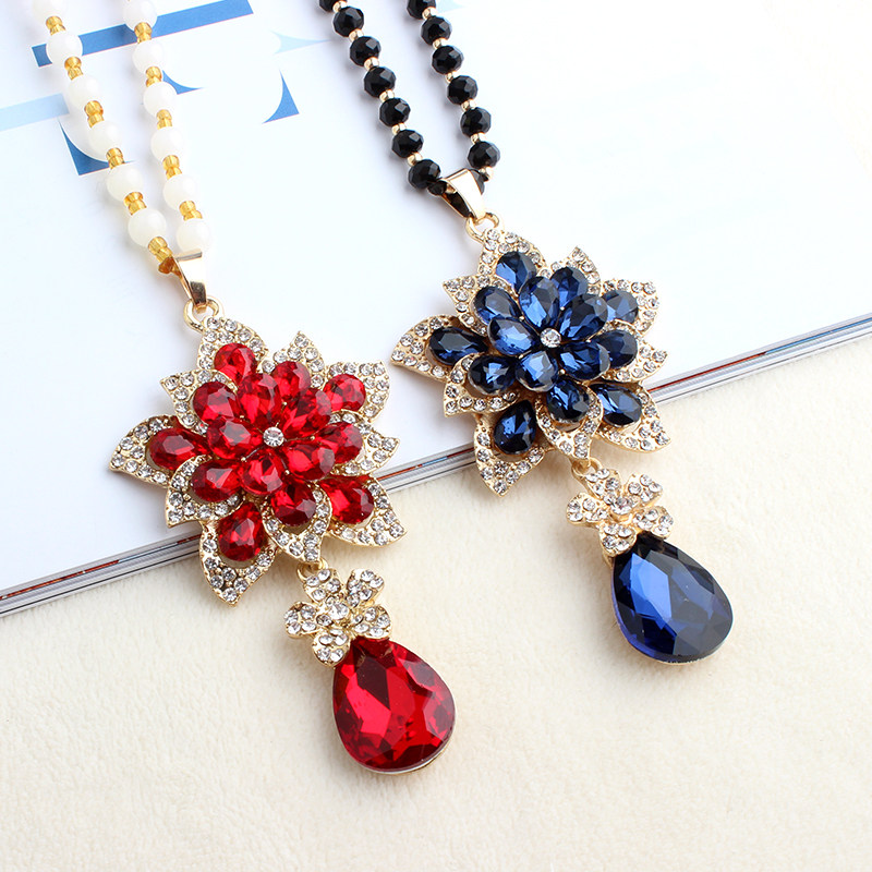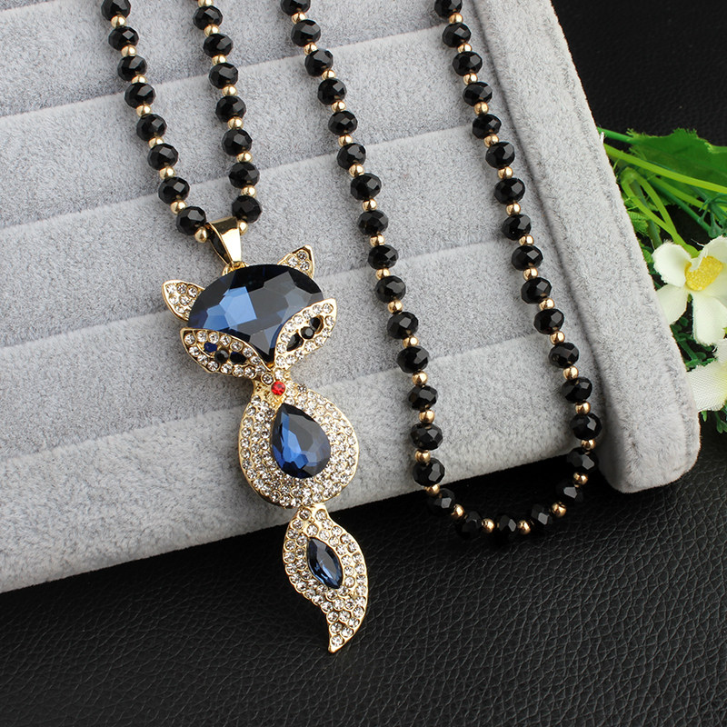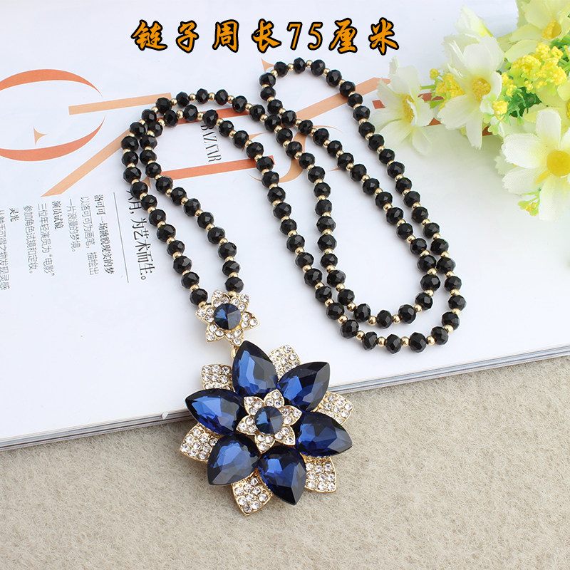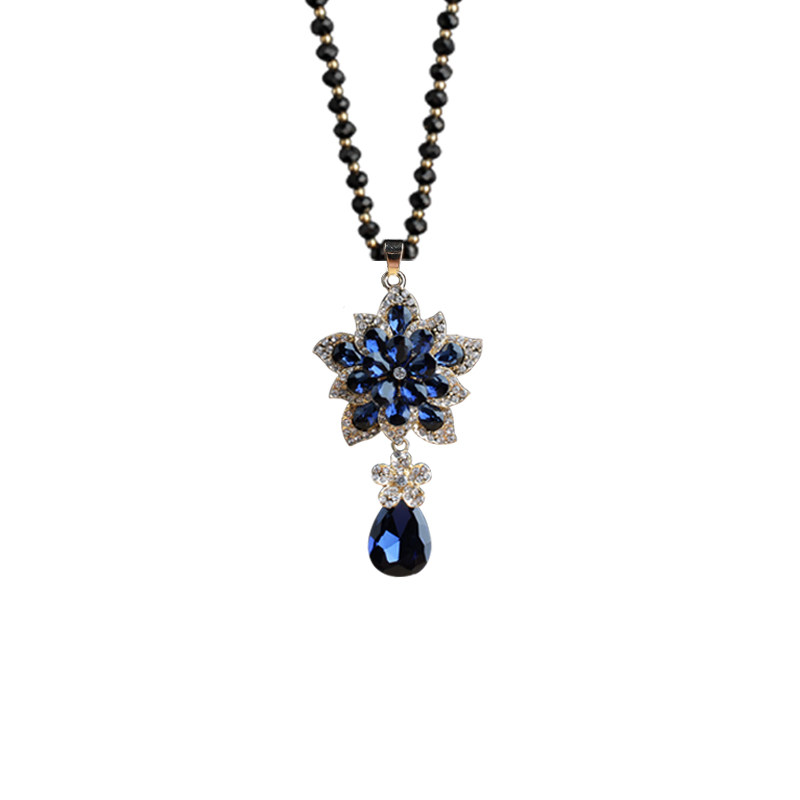 时尚长款毛衣链蓝色水晶猫眼挂件时尚百搭民族风吊坠优雅大气项链