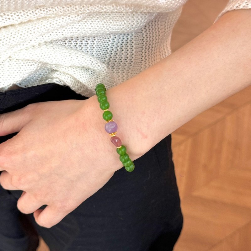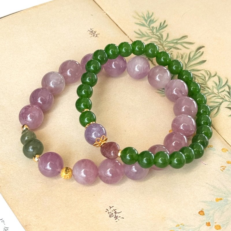 新中式天然紫马粉碧玉葫芦紫发晶复古国风手串招桃花紫水晶手饰女