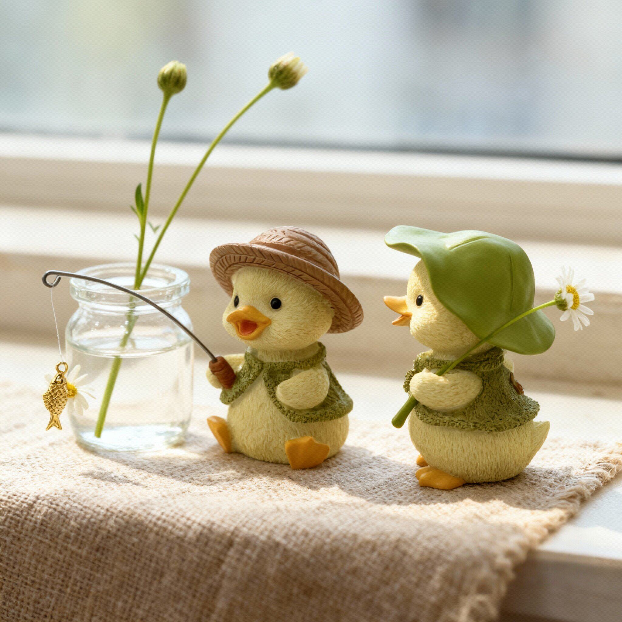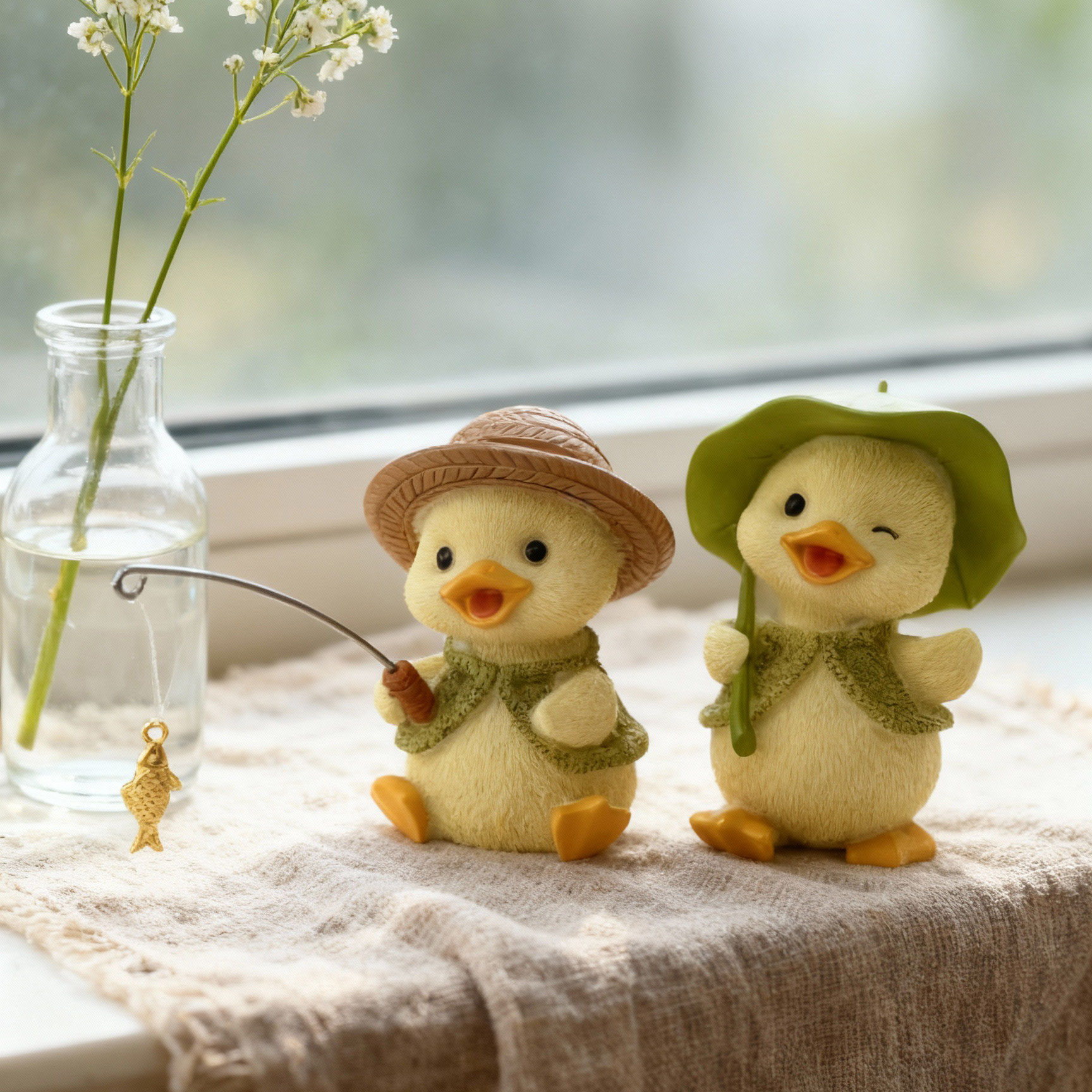 治愈卡通可爱小黄鸭子摆件办公桌面装饰品乡村田园微景观造景摆设