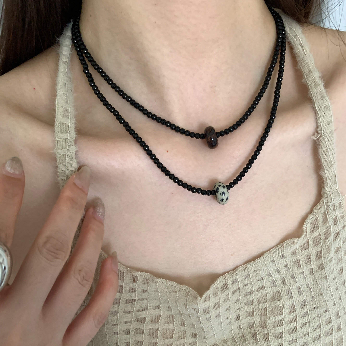 高级设计感天然石吊坠项链女轻奢小众时尚锁骨链叠戴甜酷串珠颈链