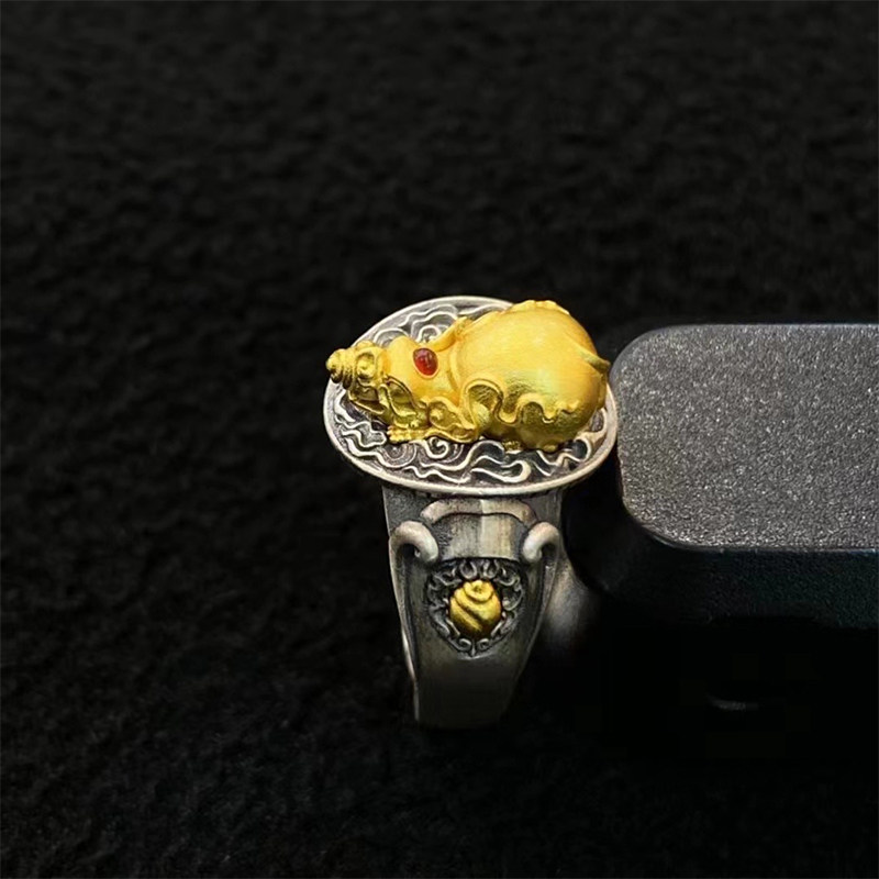 【藏玺物与悟/缘】925银镶嵌吐宝鼠戒指复古民族风萌鼠纳财指环