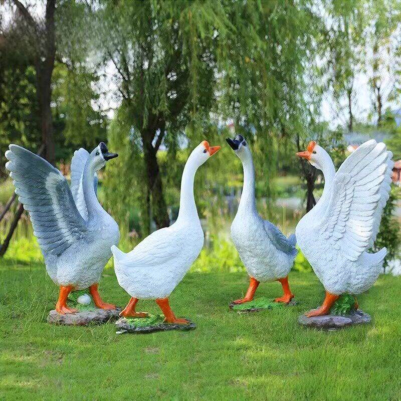 田园彷真鹅雕塑玻璃纤维大白鹅摆件乡村庭院休闲 农场装饰户外园
